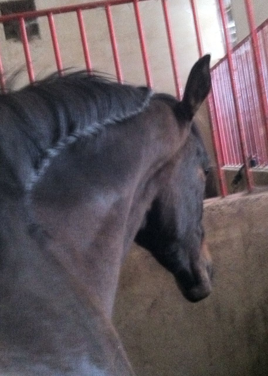 | Dire merci | petit portrait moche avec mon portable pour montrer la belle tresse d'etalon,faite avec amour pendant qu'Espoir se dandinait sous mes gratouilles |
