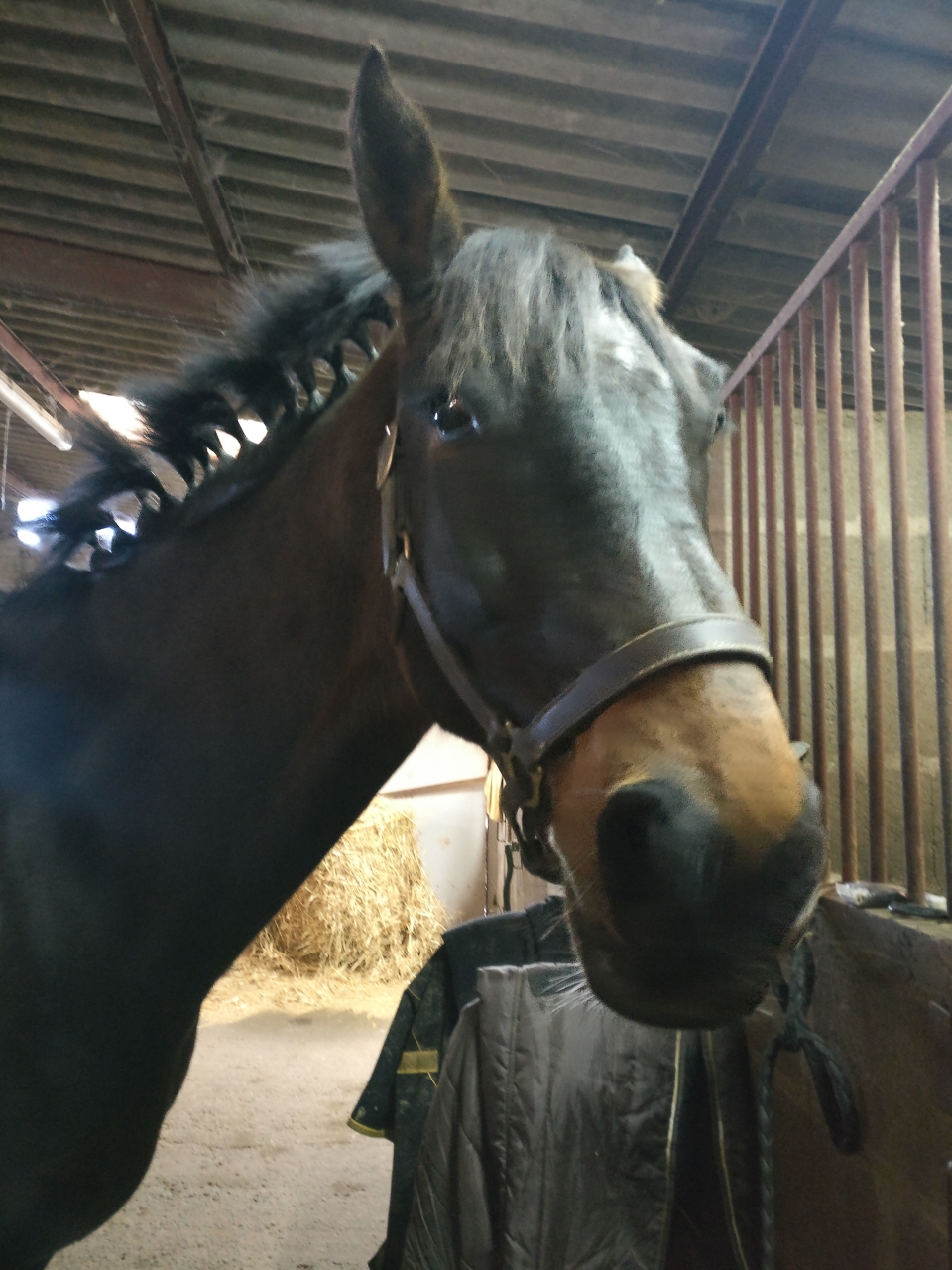 | Dire merci | Bon, une bonne nuit de sommeil et j'ai récupéré ma fatigue habituelle lol Du coup aujourd'hui c'était poney ! Il commence sa mue au mauvais moment , forcément! Donc monsieur a le poil moche et piqué, qui s'envole par paquet Petit drainage et graines de lin pour aider tout ça,ziouplaaaa! Par contre il a un pétard dans le cul Il était monté sur ressort durant la préparation à base de piaffer et autres montée de tête en mode " noooooon je t'entends pas " Séance ok , mamie a bien galéré durant sa petite demi heure de traine couillon Et on est partis promener à l'extérieur avec le toutou taré et les autres chevaux satellisés ....pfffff c'était long, mais loooong !! Espoir qui piaffait , trottinait, donnait des coups de tête comme un pur sang sur le départ , et moi qui trouve le moyen de demande à galoper sur un petit cercle dans un espace de travail en herbe sans avoir repéré un espèce de tartanpion de poney complément azimuté ,qui a littéralement explosé à côté de nous Bref ,c'était rigolo Il a froid, et il est con 😛 |