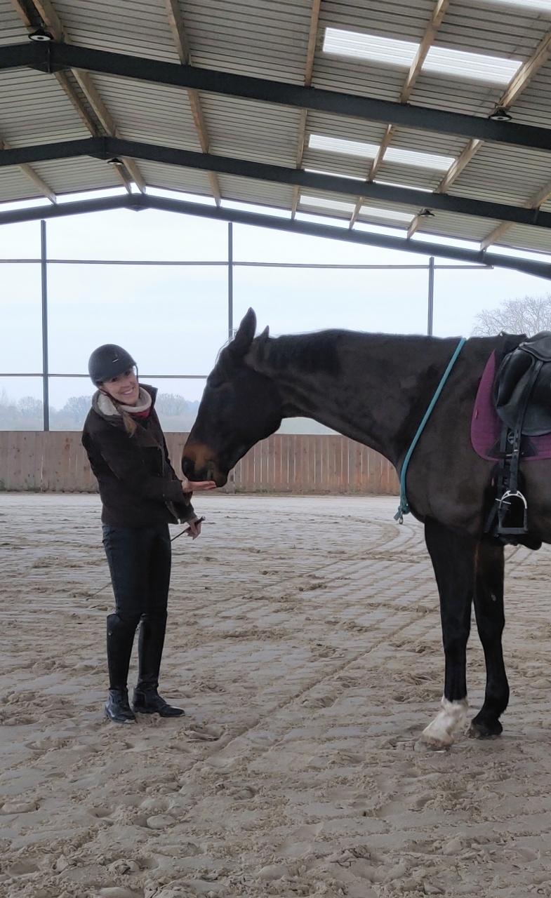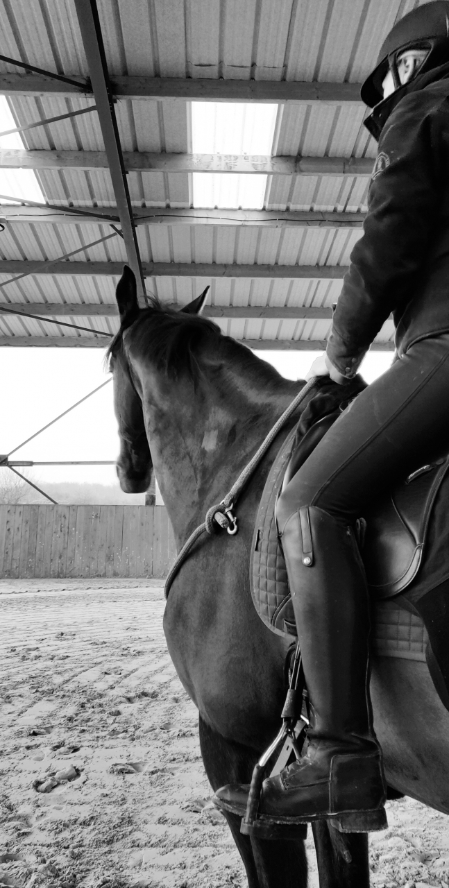 | Dire merci | Il était aussi motivé que la veille pour le cours de samedi , sauf que le patron lui a pas laché la grappe ![]() Et moi non plus au passage ![]() Je suis passée en mode " moi aussi je me mets a l'effort" et décide de me faire souffrir un peu plus plutôt que d'aller a l'économie de moyen comme d'habitude, et arrêter des qu'il y a du grabuge en dessous. Ce qui se passe mal dans l'allure doit être résolu dans l'allure alors on serre les abdos, on se fait profond dans la selle et on AGIT ! On s'est tapé des séquences de travail à finir en PLS lui comme moi mais alors on se sort les doigts du tut c'est impressionnant !! La c'était en mode cercle de 12 au galop a juste, petite diagonale,contre galop, cercle a contre galop,galoper droit, changement de pied, épaule en avant , remettre droit, changement de pied ect ... Bref. Il fait 3 degrés dehors et je suis en nage Mais le patron veut que je sorte de la zone de confort et que j'arrête de réfléchir . C'est vrai que c'est bien de lâcher le neurone pour passer en mode guerrier ^^ |