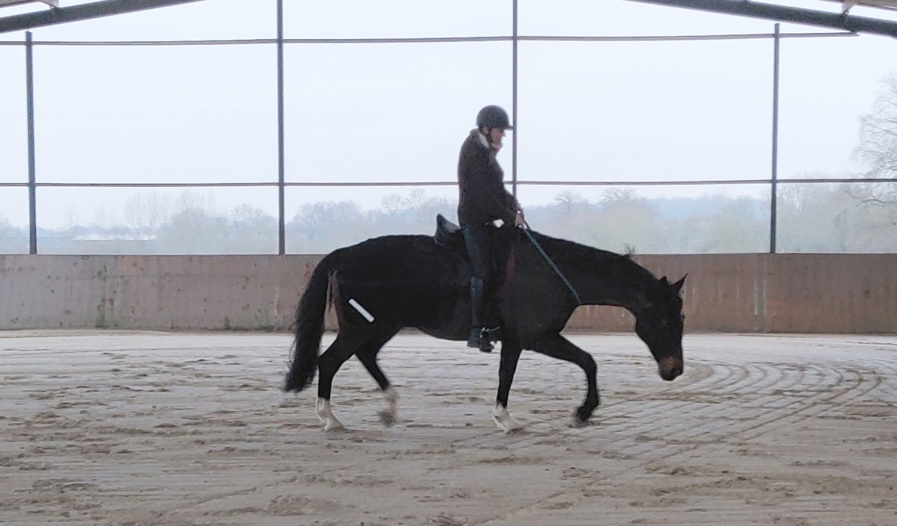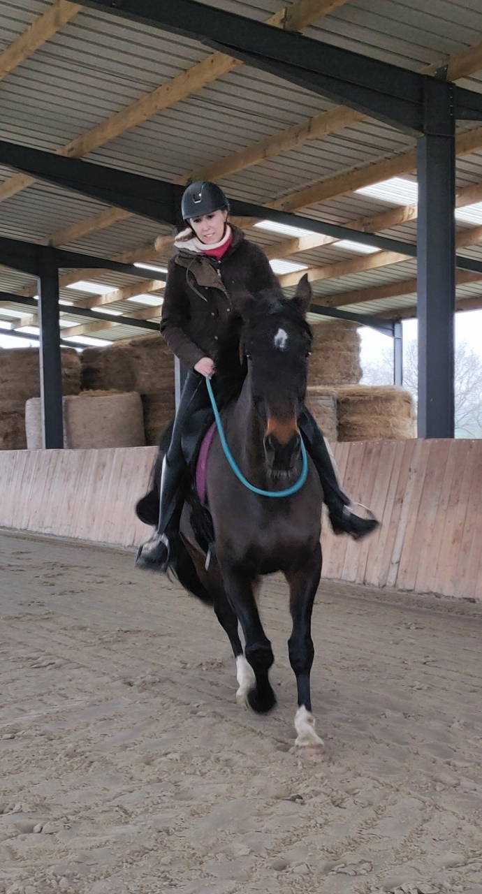 | Dire merci | Il aime bien faire des nouvelles choses tant qu'il a son mot à dire ^^ Du coup il était hyper disponible pour la séance d'aujourd'hui ! Je sais pas si c'est le fait de lui avoir laché la grappe avec juste la cordelette pour qu'on se ressente mutuellement, mais j'ai l'impression d'avoir compris des trucs !! Notamment pour l'indépendance des aides ( wiiii chrysalis galop 4 ) et l'importance de coordonner des actions de rênes indépendantes mais dans un but commun, tout en les associant a des actions dissociées des jambes . Ah . Bref . Et du coup j'ai pu faire des transitions galop a juste/contre galop en ligne droite aux 2 mains , sans faute , sans dissociation , sans changement inopiné de devant. Puis on a corsé l'affaire avec enchaîner des changements de pied des que l'équilibre était bon. Espoir s'est prêté au jeu et s'est bien appliqué Bon je l'ai quand même râlé car monsieur a décidé de coller a la jambe droite en accélérant . Il a abdiqué au bout de 3 ou 4 longueurs de transitions trot arrêt en épaule en dedans . Nomého ![]() Bref il a trop la forme et c'est un vrai plaisir de le travailler en ce moment, même s'il est quand même dissident de temps en temps |