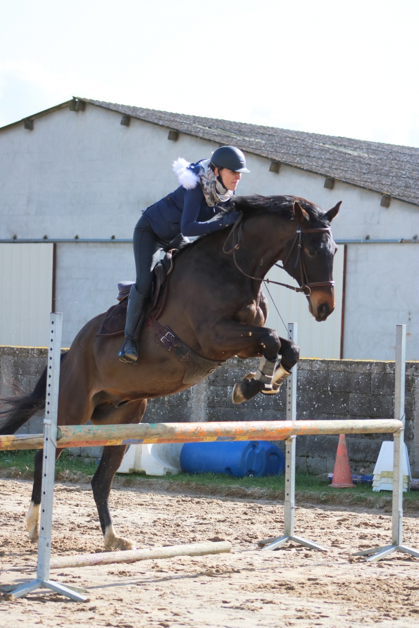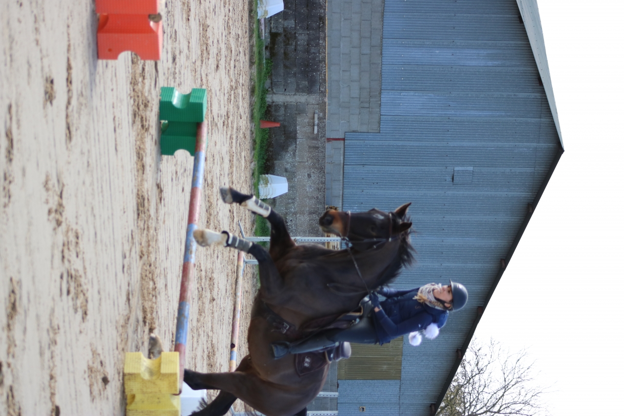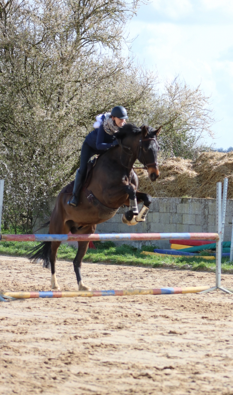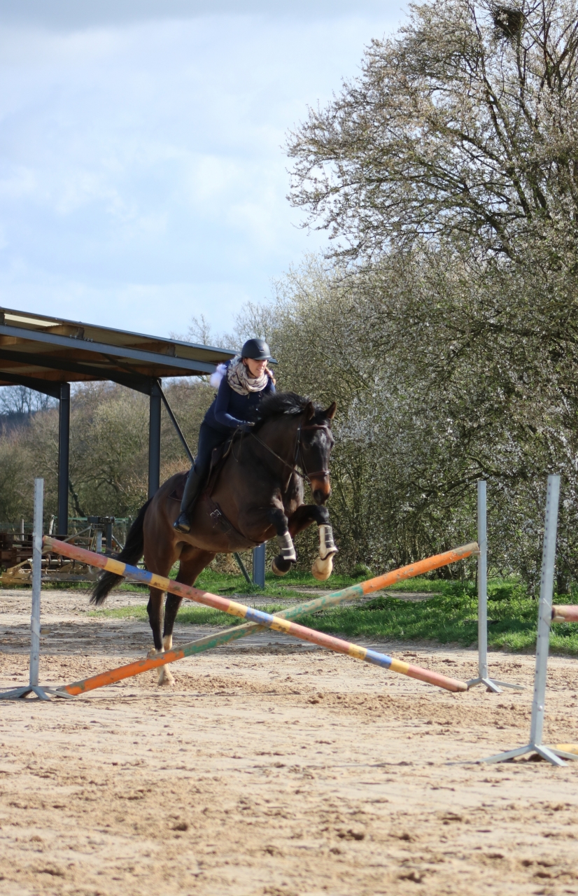 | Dire merci | Bon.... j'annonce... J'ai sauté... Il y aura même des photos si vous êtes sages et si je les récupère ahaah ( avec 2 autres séries a mettre depuis plusieurs semaines )Deux dispositifs: * ligne de 4 ( puis 3 vu que le dernier était mal posé et tombait tout le temps) sauts de puce a 40 cm de haut . Les faisait des grognes dessus, vu qu'il voulait bourriner sans pouvoir Plusieurs passages en descente et en montée, espoir se cale bien mais tu sens que le postérieur est traînant...bah oui, ça fait poc poc poc derrière * Triple avec entrée en croix, 1 foulée, vertical, 2 foulées et oxer . Espoir saute ça comme s'il sautait toutes les semaines, il s'articule au top sur le dernier, j'ai de bons réflexes quand l'abord vient mal , je suis sans un taxi ( truc de fou, c'était un peu ma caractéristique, sauter le cul dans la brouette et les mains perchées )Et on fini sur un oxer de 1m de haut sur 90/1m de large, sans forcer. Ça pourrait être sympa de bosser le saut comme ça 1 ou 2 fois par mois pour changer un peu et lui faire plaisir ! Et voir pour du hunter club quand je me serai racheté du courage ![]() |