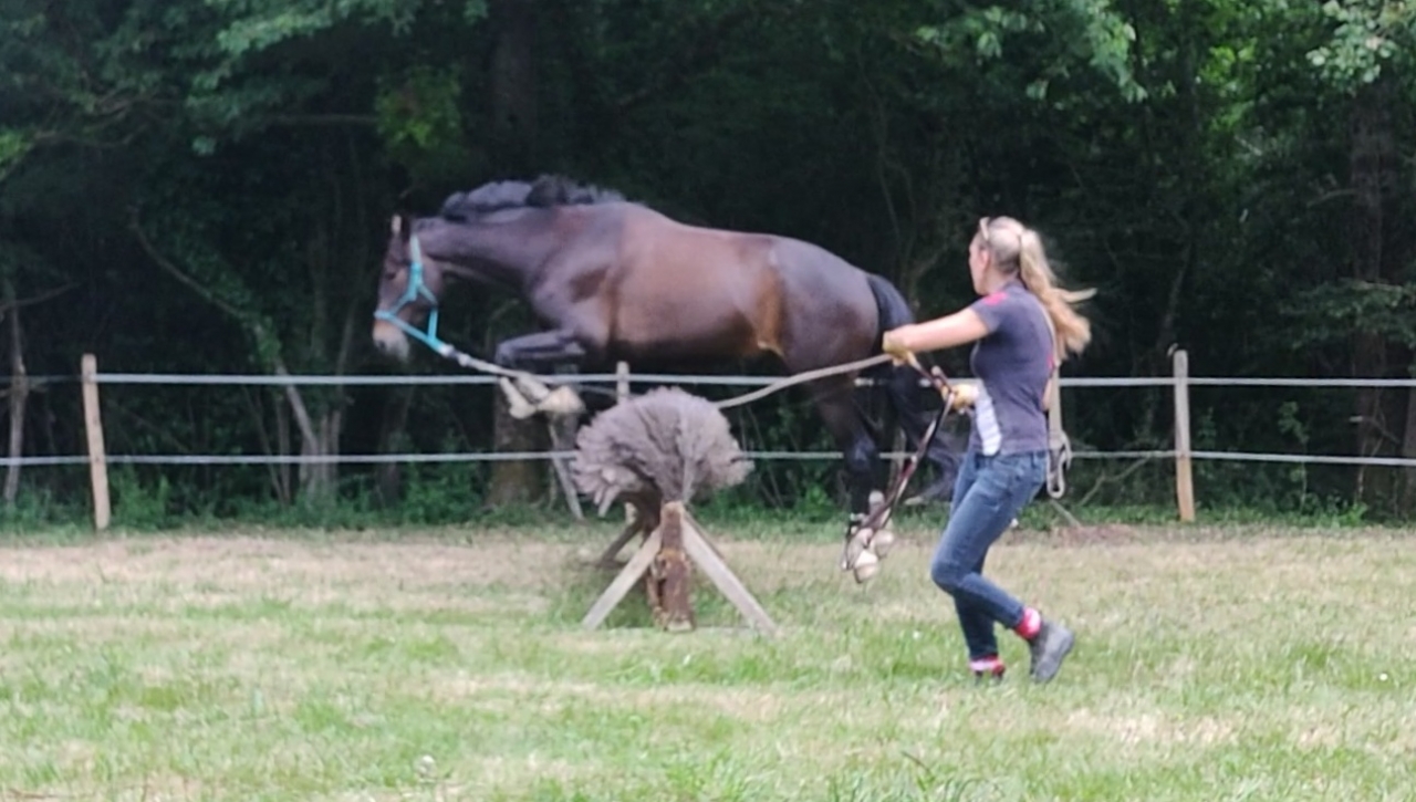 | Dire merci | on a subit un petit tremblement de terre aujourd'hui. pas de dégat,mais ça a rendu tout chose Sa Majesté Courage il était pas serein aujourd'hui, et m'a collé quelques stop durant la séance...bon...on va dire légitime" ce qui a été moins légitime c'est son espèce de "schpoufff" en train de brouter en main. Un cheval a renaclé derrière lui,je vous jure, j'ai entendu Espoir prendre son inspiration trés fort, me regarder, et me sauter littéralement dessus pour se coller derrière moi courage fuyons ![]() |