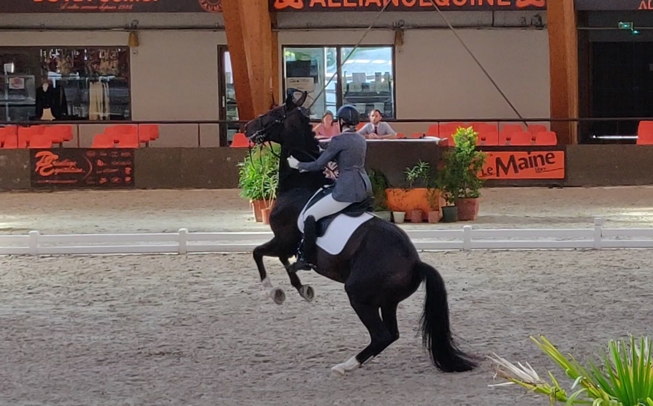 | Dire merci | Oh ce spoil shey Donc oui , il a été rigolo ![]() Première reprise, la D2 donc première fois depuis des lustres qu'on la déroule, Espoir un peu surpris du tracé donc qui pour une fois m'attend. On finit a 66,25% , on gagne l'épreuve. Deuxième reprise 7h plus tard. Je m'étais dit, vu que Espoir avait salopé ma veste bleue que j'allais prendre le minifrac,que non ça porte pas la poisse, que c'est tout joli et qu'il faut que j'arrête d'être superstitieuse et ne tiens pas cas des antécédents poissards du fameux frac. La détente se passe parfaitement bien, je suis en avance et donc je marche un moment car il fait très chaud. J'enfile le minifrac et en route pour la reprise ! La cavalière d'avant reçoit des conseils pour son proto, je dois attendre. Et ça ne plaît pas du tout a sa Majesté, qui commence a s'acculer , reculer ( mes rênes étaient a la couture hein...) J'explique au juge en M que c'est sa nouvelle manie depuis mercredi, et que j'aurai de la chance s'il cabre pas en X Je rentre Arrêt *Oeillade du cheval en arrière* *Oh t'as ta veste!* Cabré Fuck ![]() J'étais pliée de rire en arrivant en C , ça va que je me suis pas faire houspiller par les juges car je lui disais a quel point je l'aimais ![]() Le reste etait correct. Très belle énergie ( tu m'étonnes) mais des contractions ( sans déconner...) Du coup on finit dans les choux avec 66,2 et notamment des jolis 1 et 2 pour le fameux arret ![]() Quand je suis partie récupérer mon protocole, les gens ont dit " ah oui , le beau cheval qui s'est cabré !! La musique de guerrier lui allait trop bien !! " Ouaip, lui même ![]() Message édité le 14/09/19 à 19:56 |