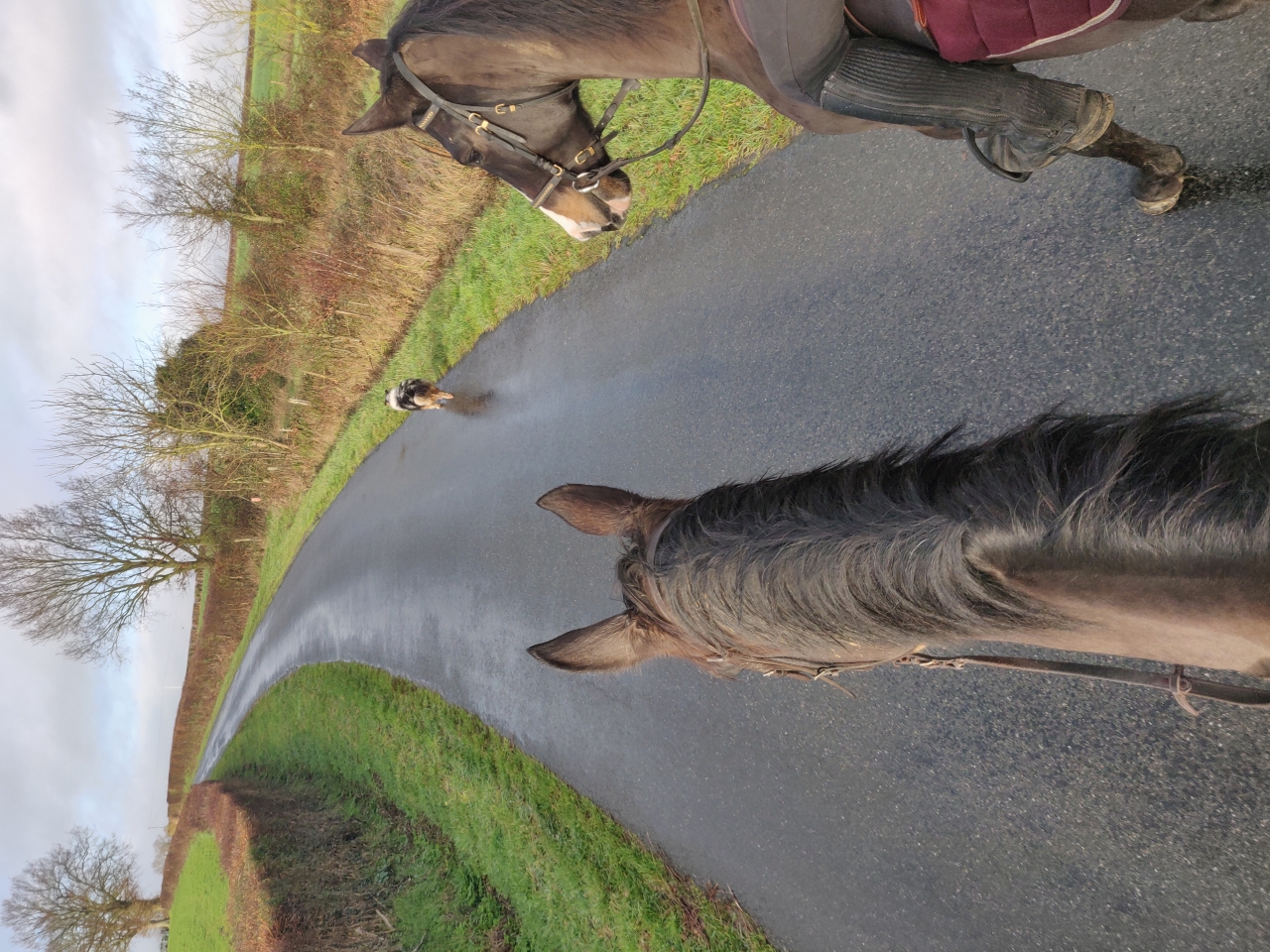 | Dire merci | Arrêtes il est vaillant des fois ![]() Il a bravé les carrefours sans visibilité, les chiens, les voitures , le vélo, les moutons, il a juste sursauté a la biquette, il a ignoré les bâches , les pneus, les chiens, les poteaux penchés, non franchement il est épatant pour sa première sortie depuis un moment ,surtout pour sa première vraie en tête avec une sacrée distance entre les 2 ! Et en plus il se rappelait des chemins...moi, beaucoup moins ![]() |