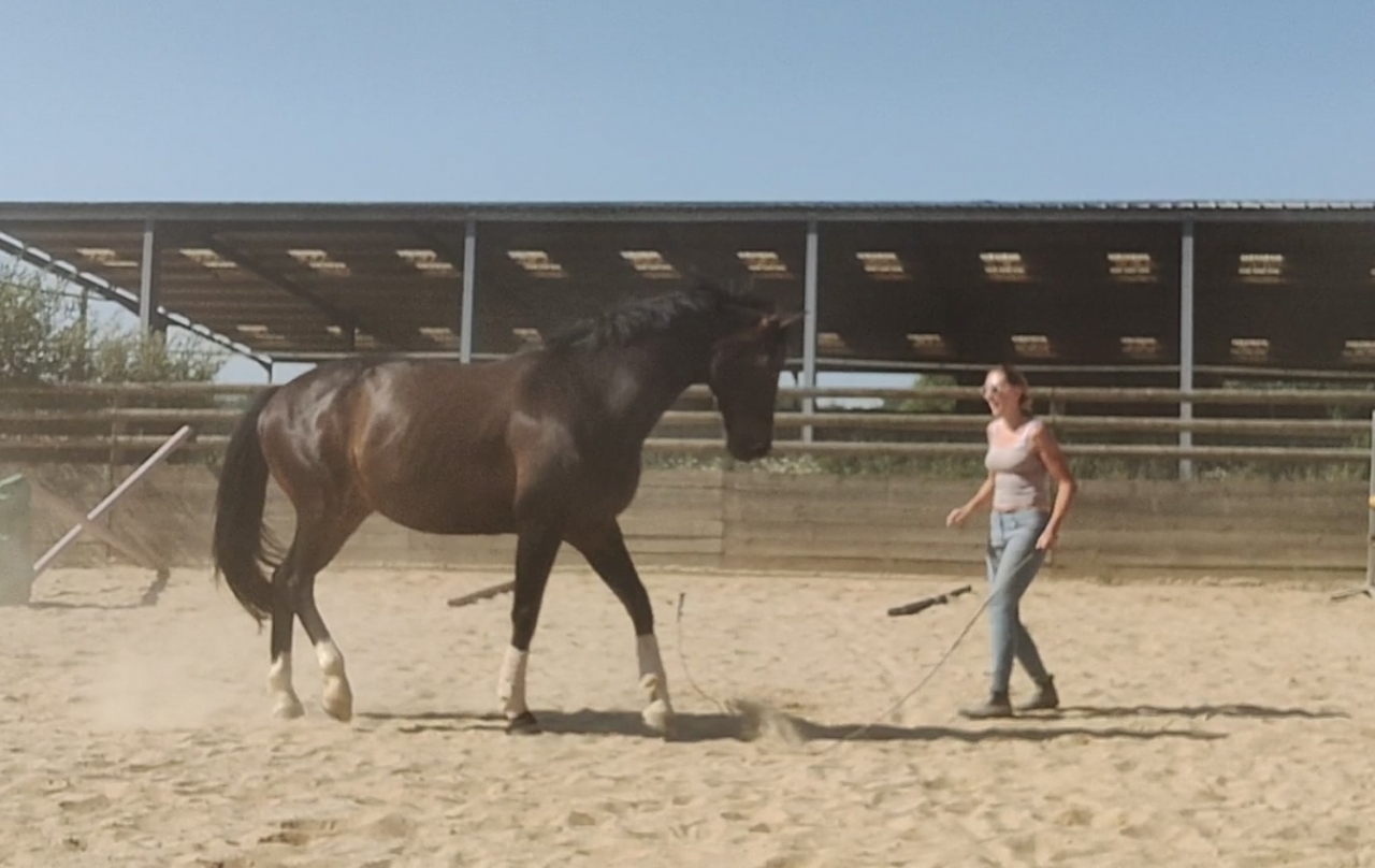 | Dire merci | On est partis faire les cons en longe en extérieur ![]() En gros comme il est assez " vivant " en extérieur en ce moment (doux euphémisme ) j'ai souhaité bosser le mental et l'écoute du gros machin ![]() Licol corde,grand lieu inconnu et ouvert, balles de foin tout frais parsemées dans le pré, et le tracteur qui travaillait a proximité .... Il a été super mignon ! Très avant , mais avec du contrôle ,c'était génial de pouvoir courir avec lui , alterner des lignes droites où il allonge le trot, des petits cercles au pas rassemblé et des beaux galops en courant avec lui sur une espèce de patate arrondie, mes jambes n'allant pas aussi vite que les siennes . Puis on a fini par une balade en main pour brouter . On est allés voir Jagger, qui après un coup de snapping a décrété que le grand machin lui faisait peur, donc il se collait derrière l'autre poulain pour le pousser de l'epaule " allez viens on y va ,mais si mais si c'est safe je te dis, passe quand même en premier " J'adore ...pas d'impératif de boulot ou de compétition, il fait beau , je peux prendre mon temps c'est trop chouette |