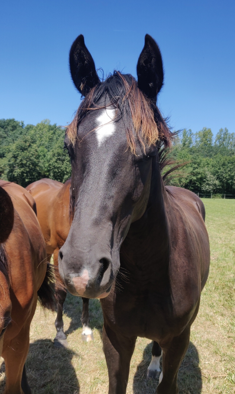 | Dire merci | Bah il est mignon, pas balafré et pas envahi de mouches là-dessus merci il a vraiment un pif à bisous !!Les crins ont l'air de bien délaver au soleil ! |