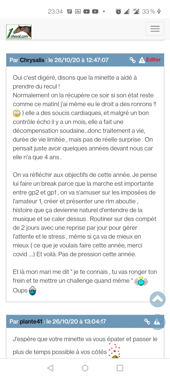 | Dire merci | Oui tu as raison, d'autant plus que c'était pas prévu en début de saison ! J'ai retrouvé un post ici même après le championnat de France am 2 en 2020 et clairement ... C'est assez cocasse ![]() ![]() Voilà. Et donc mon chéri avait raison ![]() Il a toujours raison c'est pénible d'ailleurs ![]() Cheval, cavalière même combat, c'est moche ![]() |