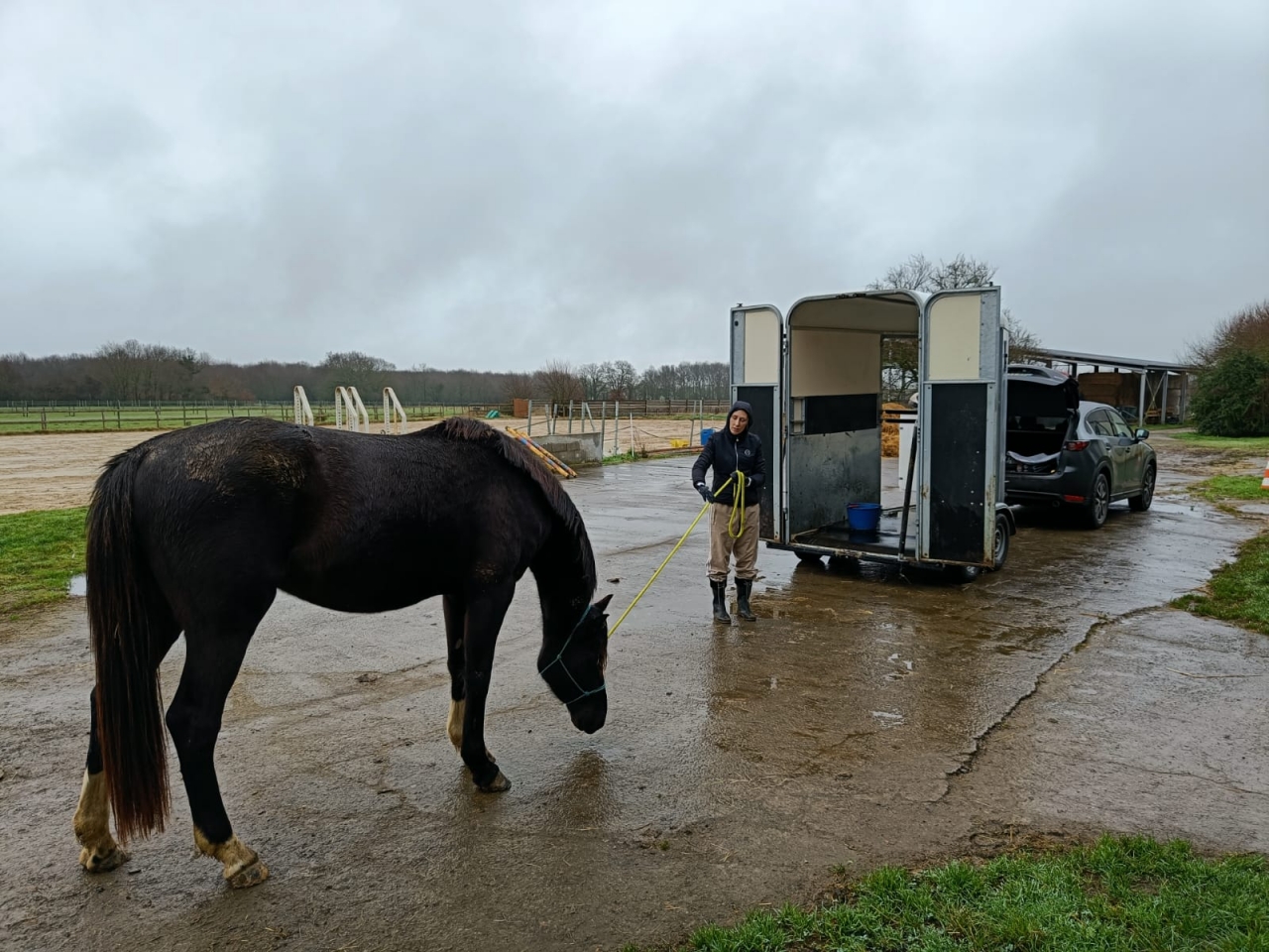 | Dire merci | Félicitations! Faut être motivé pour faire du concours à cette saison Et joli frac Ça rend très bien! Mais tu ne lui tonds pas la tête?Il aime pas le van ton poulain? Il a jamais voyagé? |
