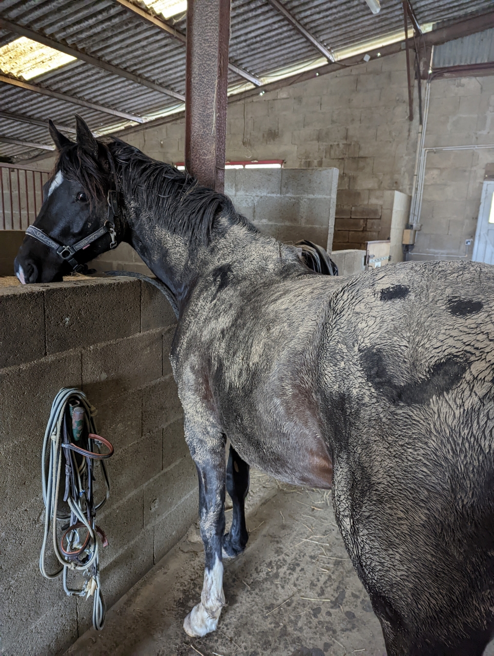 | Dire merci | Dernière piqûre pour Poussin , il retourne avec les copains jeudi si tout va bien Le fourreau était un peu gonflé mais les plaies sont belles . Il est mignon tout plein aux soins en plus Les sols sont impraticables en extérieur et le manège, on peut encore monter dedans mais c'est limite...donc on s'est contenté d'un tour au pas sur les chemins de balade et de faire une " longe montée" avec de larges courbes , une attitude de streching et des transitions dans le bon mouvement en avant . 35 minutes ,merci au revoir . Et vive le chauffe dos BoT !! Il fait la grimace car il a froid et faim, toujours un plaisir de ramener des fibres quand on est accueillie aussi aimablement 😅 ( Comme maman, qui a faim toutes les 2h30 en ce moment ahah!!) Au moins en été,on peut monter a 7h du mat ! |