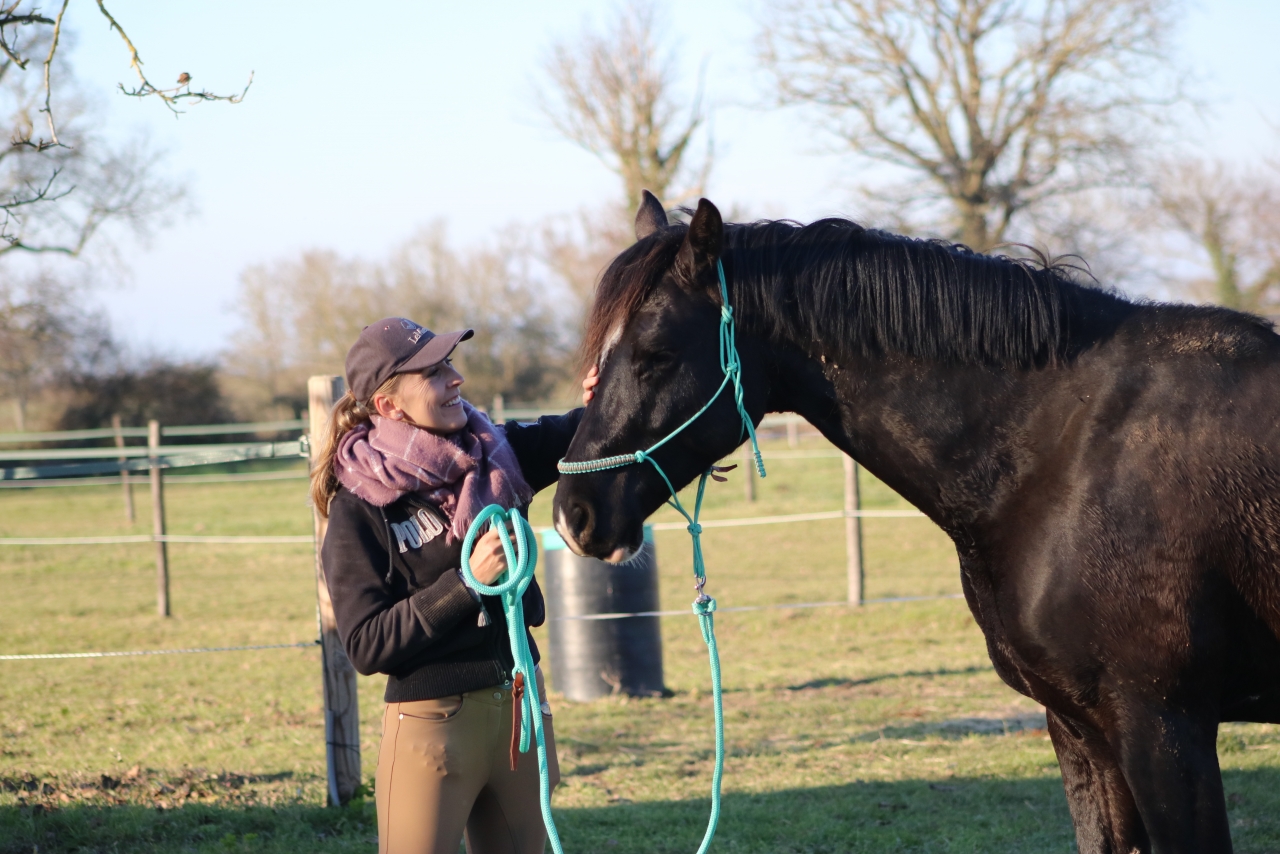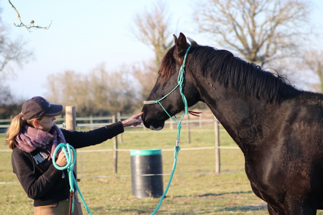 | Dire merci | Tu l'as essayé aux longues rênes Jagger? C'est top pour mettre les boutons en place sans compliquer les choses avec la gestion du poids (et des perturbations) du cavalier, ça permet de bien dissocier les deux. Je l'ai déjà dit, mais quand je suis montée sur Sherpa, ça a été une formalité parce qu'il était mis aux longues rênes et qu'il savait déjà tout en fait. En 3 séances, on était dehors en balade avec tata Java. |