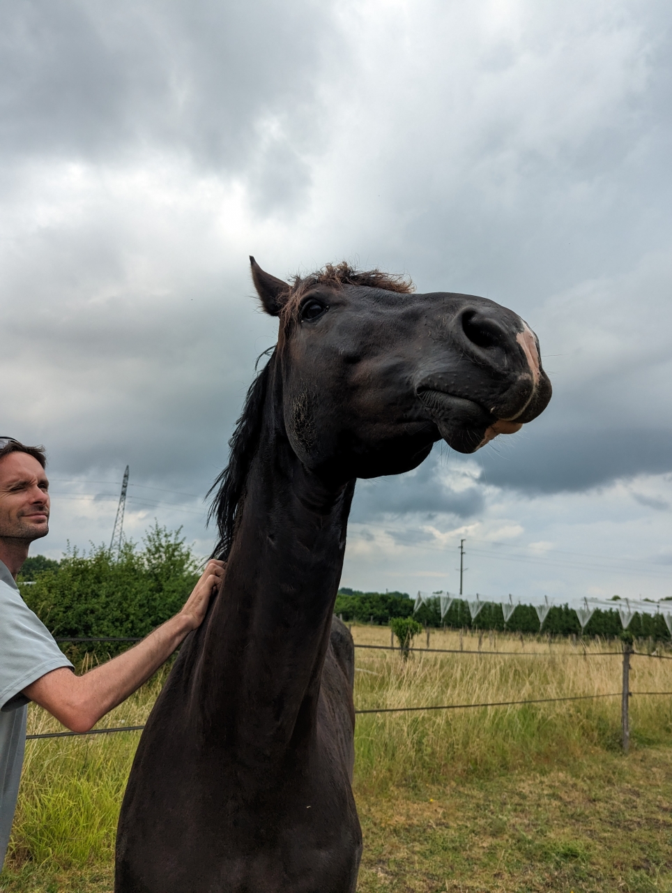 | Dire merci | Il a récidivé ![]() Cette fois ci sur le chemin du retour au parc après le cours. Il se met sur le bas côté en tendant sa longe , me regarde avec sa tête de " attends ya un truc " et un gros pipi.... Le timing mon cheval 🤦 Je sais pas si les chevaux ont une prostate , mais mon presque petit vieux de 14 ans semblerait avoir quelques soucis |