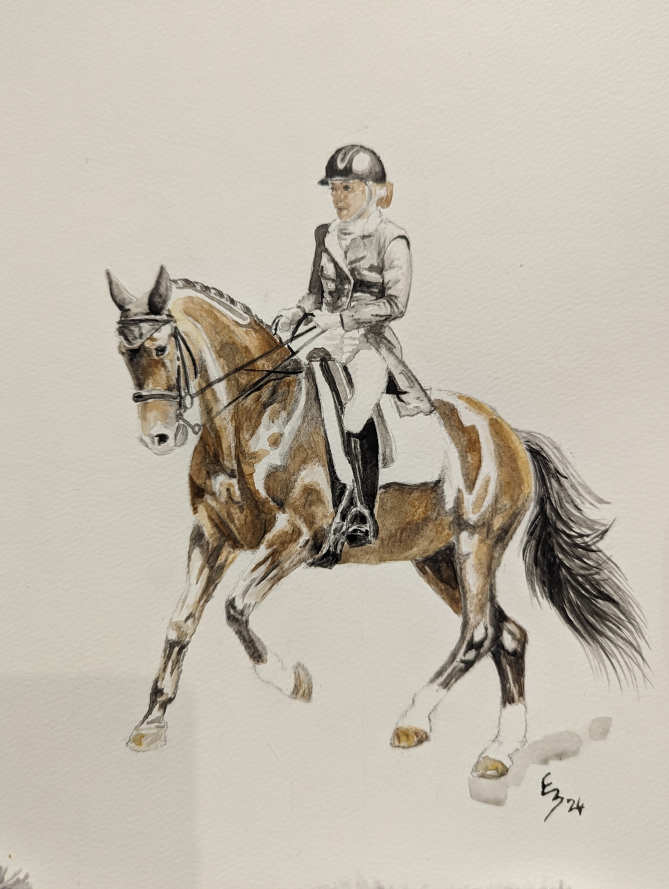 | Dire merci | En attendant, je me suis amusée avec de l'aquarelle, premier cheval de ma vie avec cette technique( que je n'avait pas pratiquée depuis...30 ans tellement je ne maîtrisais pas a l'époque !), j'espère que vous reconnaîtrez ![]() ![]() |