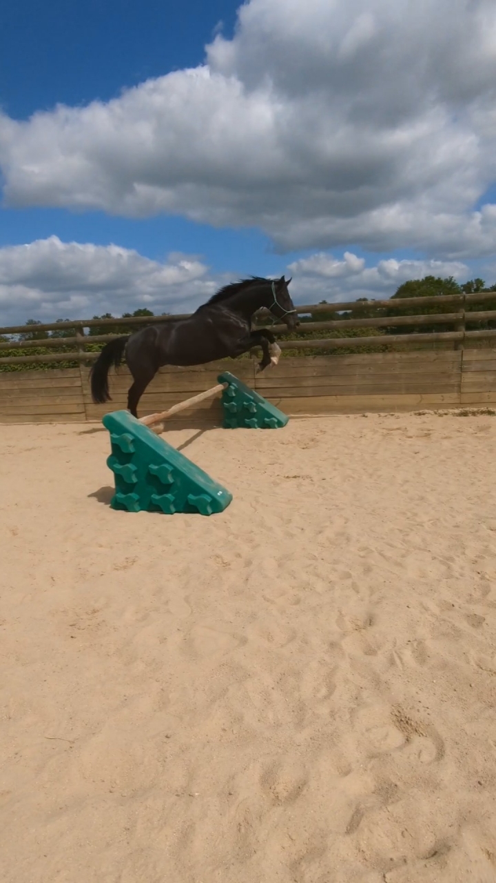 | Dire merci | Un nain qui saute ![]() Un nain qui s'etire ![]() On a fait une séance de meca sur des petits obstacles , avec une ligne de cavaletti saut de puce - 1 foulée a aborder dans les 2 sens . Jagger passé l'émotion de " argh une forêt de barres au sol et des plots inconnus " (ouais poto c'est le but aussi,que tu te prennes en charge sans assistance pour aller sur des trucs inconnus ) s'est bien appliqué pour faire de très jolis passages , sans courir, en équilibre, avec une jolie auto correction. Première fois qu'il voyait autre chose qu'un obstacle isolé ou un mini " double " ( un cavaletti ,1 foulée vertical) et franchement une fois qu'il pose son cerveau, il s'applique super bien sans monter dans les tours comme Espoir peut faire. Et le gros, même dispositif pour le mettre dans le bain et qu'il se cale, puis j'ai retiré la barre du milieu pour laisser juste l'obstacle final monté en oxer , et utilisé le recul acquis sur le dispositif pour gagner en frappe et reculer un poil l'appel car il a tendance sur des petites hauteurs à négliger et s'enterrer. Parfait! On a fini sur un bon bloc d'1m20 sur 1 m de large sans aucune difficulté ! |