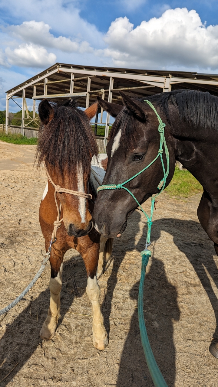 | Dire merci1 | une aventure qui se poursuit.... Espoir, mon doux mon tendre mon merveilleux Espoir Espoir qui sait aussi se faire fantasque et cabochard Espoir qui ne laisse personne indifférent. Il subjugue , il fait peur, il attendrit et il amuse. Espoir, c'est l'histoire d'un poulain tout moche et grognon . UN poulain de 18 mois qui n'aimait pas les hommes. Espoir, c'est un poulain qui a accepté de se livrer, à condition qu'on le respecte et qu'on l'écoute. Espoir, c'est un cheval a qui on n'ordonne pas, mais a qui on suggère. Espoir c'est un cheval a qui on dit oui d'une voix de souris, souvent. Et non d'une voix neutre, discrètement. Espoir, c'est l'odeur qui imprègne les mains après une séance, c'est un souffle protecteur dans le cou, c'est la chaleur animale, c'est la puissance contenue, c'est une frappe de sabots et un hennissement rare et rauque. Espoir c'est des étoiles dans les yeux quand son nom est évoqué, c'est une histoire d'amour vécue depuis le 29 decembre 2010. Espoir , c'est une promesse ... Et la releve du grand frère Jagger ou Poussin pour les intimes ... Je souhaitais rencontrer un jeune tout aussi qualiteux mais plus cool mentalement et moins physique a monter ( non pas qu'on aille en rajeunissant hein...) Le temps a fait son oeuvre pour pouvoir nous découvrir mutuellement et c'est un véritable coup de coeur... tout en délicatesse, retenue , légèreté, un will to please extraordinaire ! Introverti et sensible, c'est le bon élève contemplatif qui déstabilise tant il me ressemble. Nous formons dorénavant un trio avec mon "jumeau maléfique" et mon "enfant intérieur" nous trouvons un bel équilibre...l'un est apaisé, l'autre trouve un socle solide pour l'aider à s'épanouir et moi j'ai le coeur qui a grossi ×1000 et ai trouvé réponse a bcp de questions... Alors voici leur post, pour relater nos aventures, nos remises en question,nos avancées et leurs bêtises Message édité le 24/11/23 à 19:10 Message édité le 24/11/23 à 20:34 Message édité le 17/04/24 à 19:14 Message édité le 17/04/24 à 19:14 |