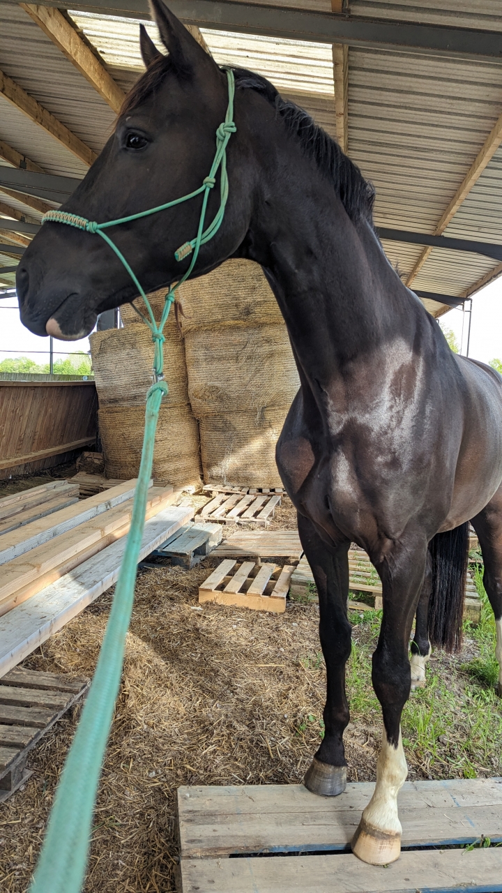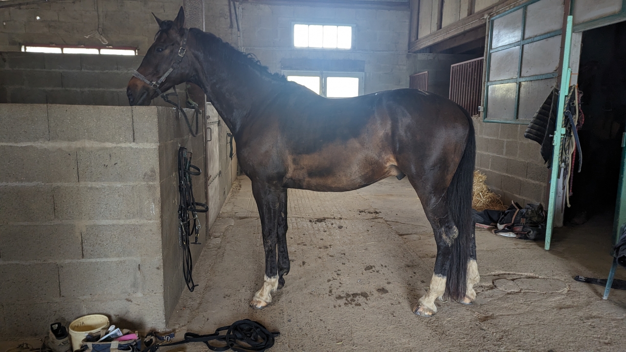 | Dire merci | Il est bien beau Espoir là! Je ne sais pas si c’est la séance sportive, mais il a le ventre remonté Le petit… on dirait qu’entre l’avant et l’arrière c’est pas le même cheval Il va encore bien changer |