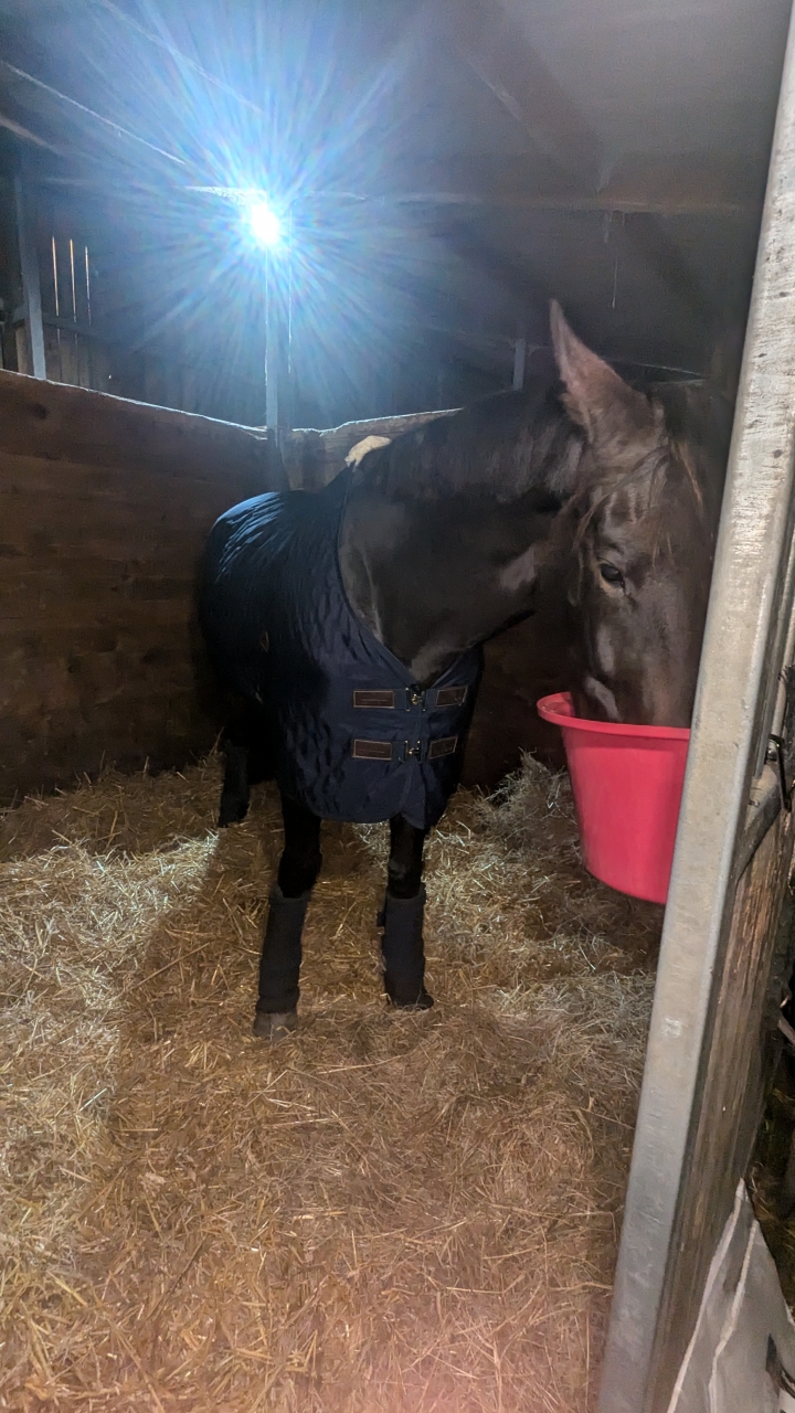 | Dire merci | Oui c'est fait depuis début juin quasiment Erzie. Il est demandeur d'interactions , mais malheureusement hormis lui faire faire un cercle en liberté, lui faire tirer la langue et brouter en main, on ne fait plus grand chose depuis l'échec de la tentative de remise au boulot début septembre ( où il avait fait concrètement 1 seule vraie longe et des balades au pas actif.) |