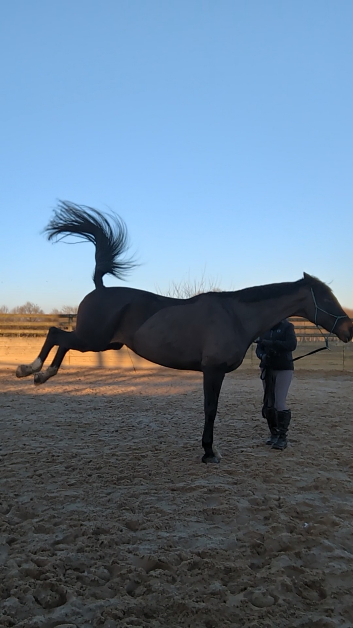 | Dire merci1 | Oh l'imbécile heureux ![]() A l'heure où je vous parle , le bidule de massage me malaxe les lombaires, j'ai une ampoule doigt a guérir et 2 ongles a refaire . Et pas d'engelure . Sauf si on considère que le cerveau de mon cheval a pris un coup de froid et que c'est devenu une engelure géante ![]() J'avais cours . Carrière qui n'a pas l'air trop gelée mais au bout de 20 minutes de pas et d'une seule longueur au trot, le dessous est dur malgré les apparences, le cheval n'ose pas trotter. Direction le manège , tant pis pour le beau soleil. Et on relance le début du trot . Espoir voit enfin un sol bien palpable et envoie la sauce . Bon,on va faire une détente dans le mouvement en avant au galop car ça commence a brasser sévère en dessous . Quelques embardées donc un magnifique gauche droite après un doublé, le cheval est allé a droite, moi a gauche , les lombaires n'ont pas aimé la blague quasi a froid . Rip les sensations dans la jambe droite , et vu la bombe sous les fesses, quite a ce qu'il fasse l'idiot, autant le faire sans moi au-dessus,j'ai passé l'âge, merci. De fait,monsieur part en trombe , m'invite à jouer , de puissantes ruades et quelques démarrages vent du cul , on repart au boulot monté. Enfin au " boulot " ![]() Embarquée 20 minutes au galop ![]() Aaaah il faisait tout , hein ! Et léger ! Et a l'écoute ! Mais clairement pas en mode travail ! Mode jeu activé, on fait sauter maman dans tous les sens . C'est un changement de pied , c'est un chaAAAAAAngement de PiIIIEEEED , c'est pas une ligne c'est une LIIIIIIGNEUHHH! (enfin non, plutôt une LIIIII.... parce que la fin arrive trop vite . Le trot était rocambolesque, mais ça a permis de bien jouer avec les transitions dans le bébé passage , avec pour une fois 3 ou 4 belles foulées a la suite. Lui ,il est content ,et moi sur les rotules et en sueur par 2 degrés 🥵 Par contre il avait beau être chaud bouillant , a contrario des autres séances ,il n'était pas dans l'opposition, un vrai gardon frétillant |
