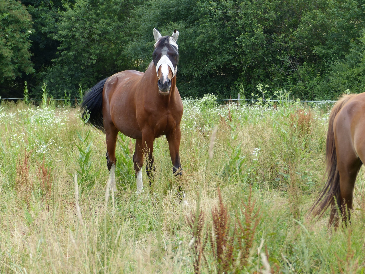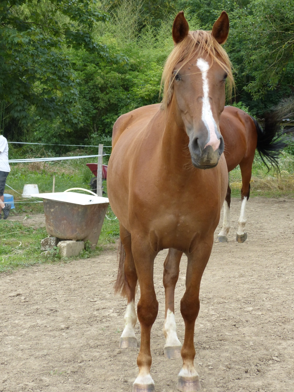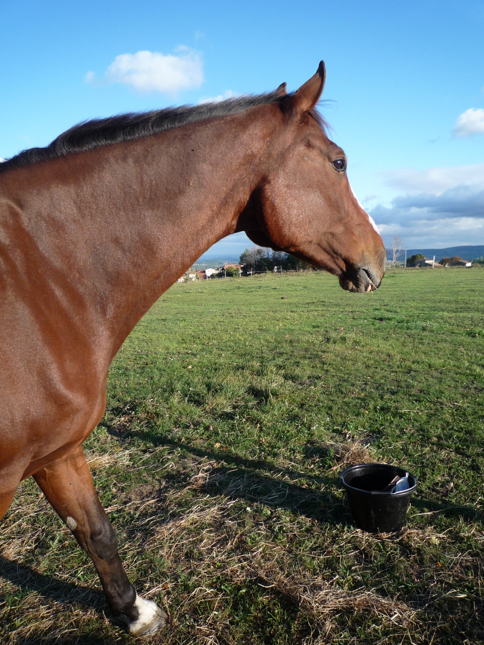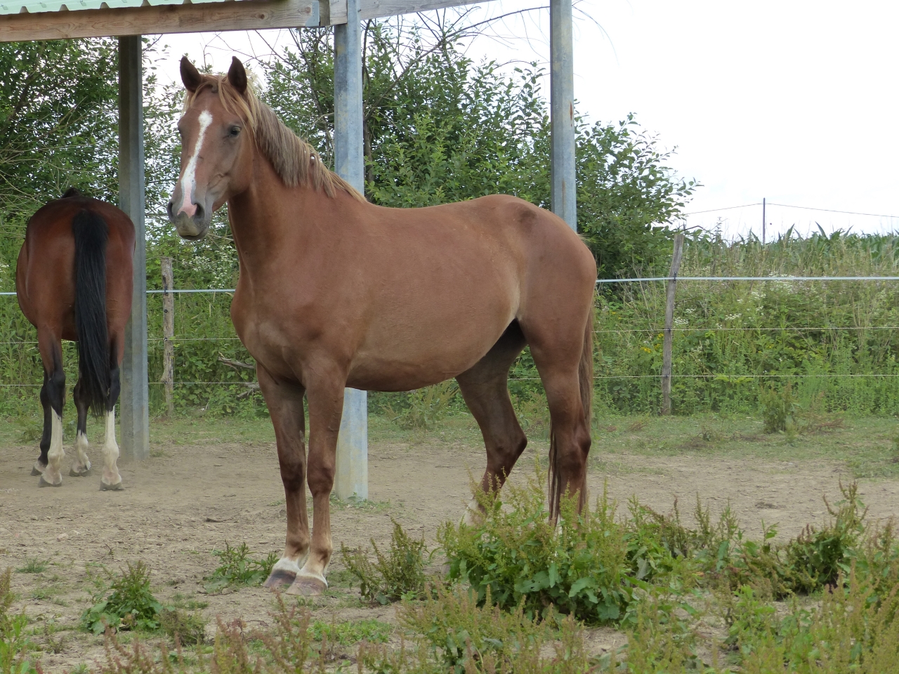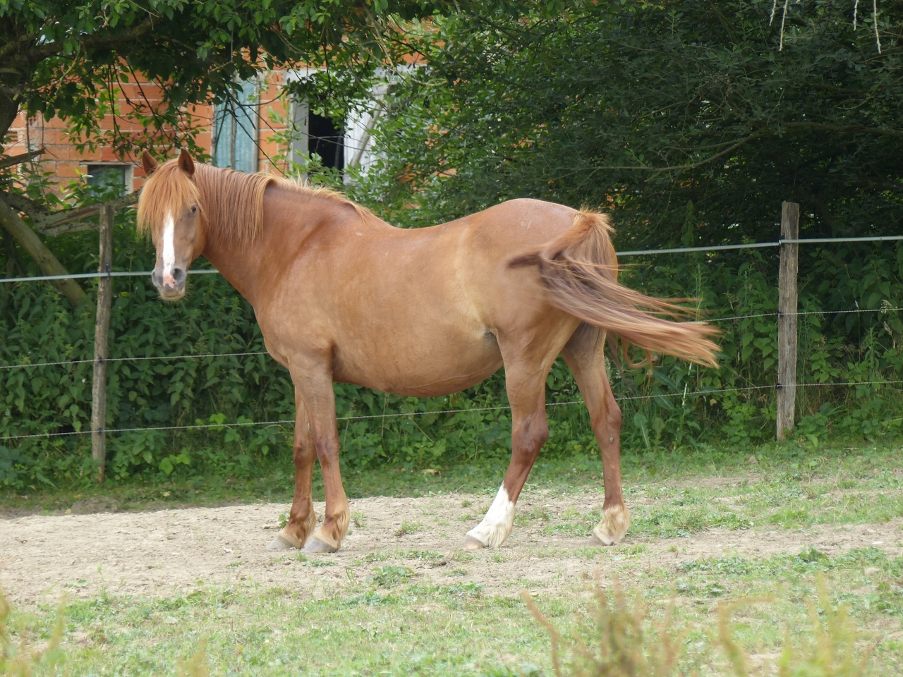 Non je ne l'ai pas vendu car elle reste LA jument de ma vie j'en reste persuadée elle me connait par coeur et est la seule qui arrive à entretenir cette relation si exceptionnelle que nous avons toutes les deux. Même si j'aime j'adore mes deux autres loustics nous n'avons pas la même relation c'est assez indescriptible. En juillet 2014, Pampa à donc pris ses nouveau quartiers et rejoint sa fille chez mes beaux parents en Bourgogne. Je continuais les balades à gogo jusqu'à ce que la colloc cob normand décide de lui faire une jolie entaille au dessus du boulet postérieur droit qui s'est transformé en suros. De la j'ai arrêté de la monter pendant 1 an et recommence les ballade depuis début juillet uniquement. C'est vraiment ce qu'elle aime faire et je me suis aperçu qu'en la laissant au pré et en me contentant de la brosser toutes les semaines madame s'ennuyait vraiment et depuis son retour en balade elle est au taquet