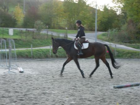 | Dire merci | Mercredi 26 janvier 2010 : étant en pleins partiels je monte peu en ce moment mais j'en ai tout de meme besoin pour m'aérer un peu la tete. Aujourd'hui petite séance d'assouplissement ou Réal s'est très bien conduite. Elle commence vraiment a venir se tendre et a accepter mon contact. Je suis vraiment contente de son évolution. Sinon (merci facebook) j'ai vu qu'okapi avait encore fait deux sans fautes en concours (E2). J'arrive vraiment pas a comprendre pourquoi avec moi il s'arretait comme un enfoi**... Bon promis j'arrête d'y penser et je tourne la page mais c'est vraiment un echec pour moi et c'est pas vraiment mon tempérament de jeter l'éponge. Et juste pour le plaisir Speedy avec mon petit frère qui fait pas de cheval : ![]() |