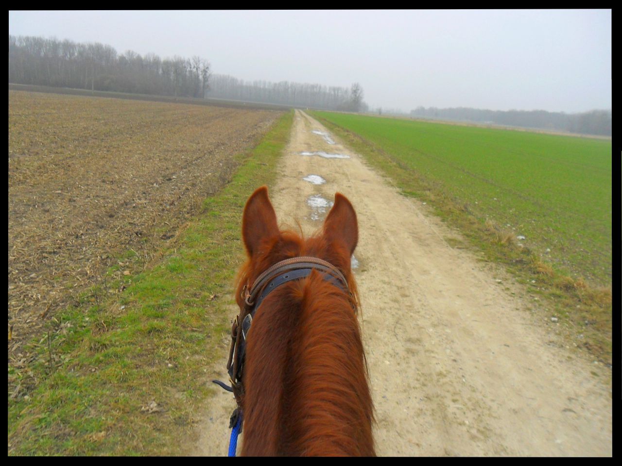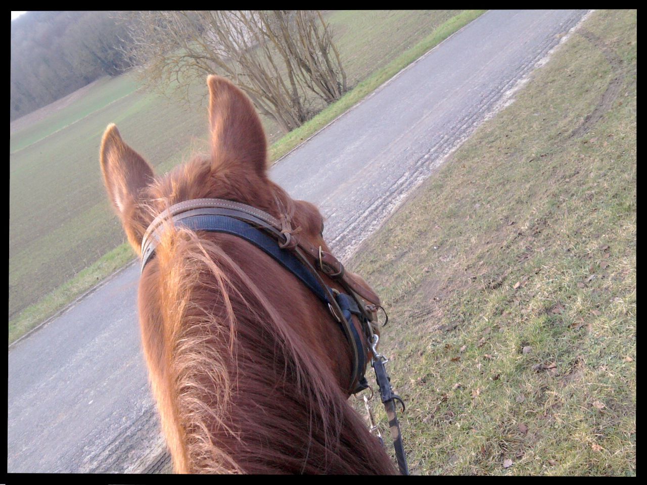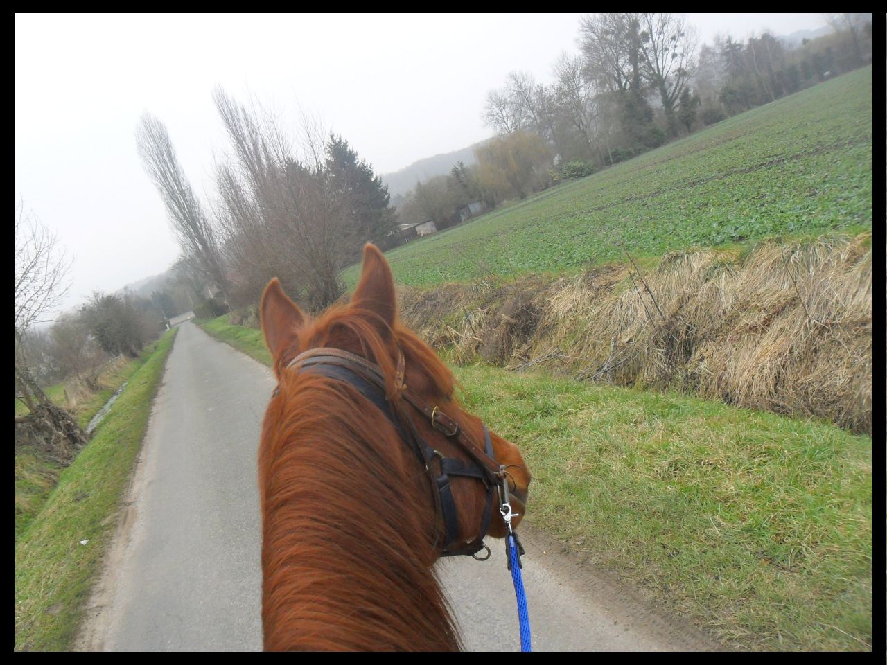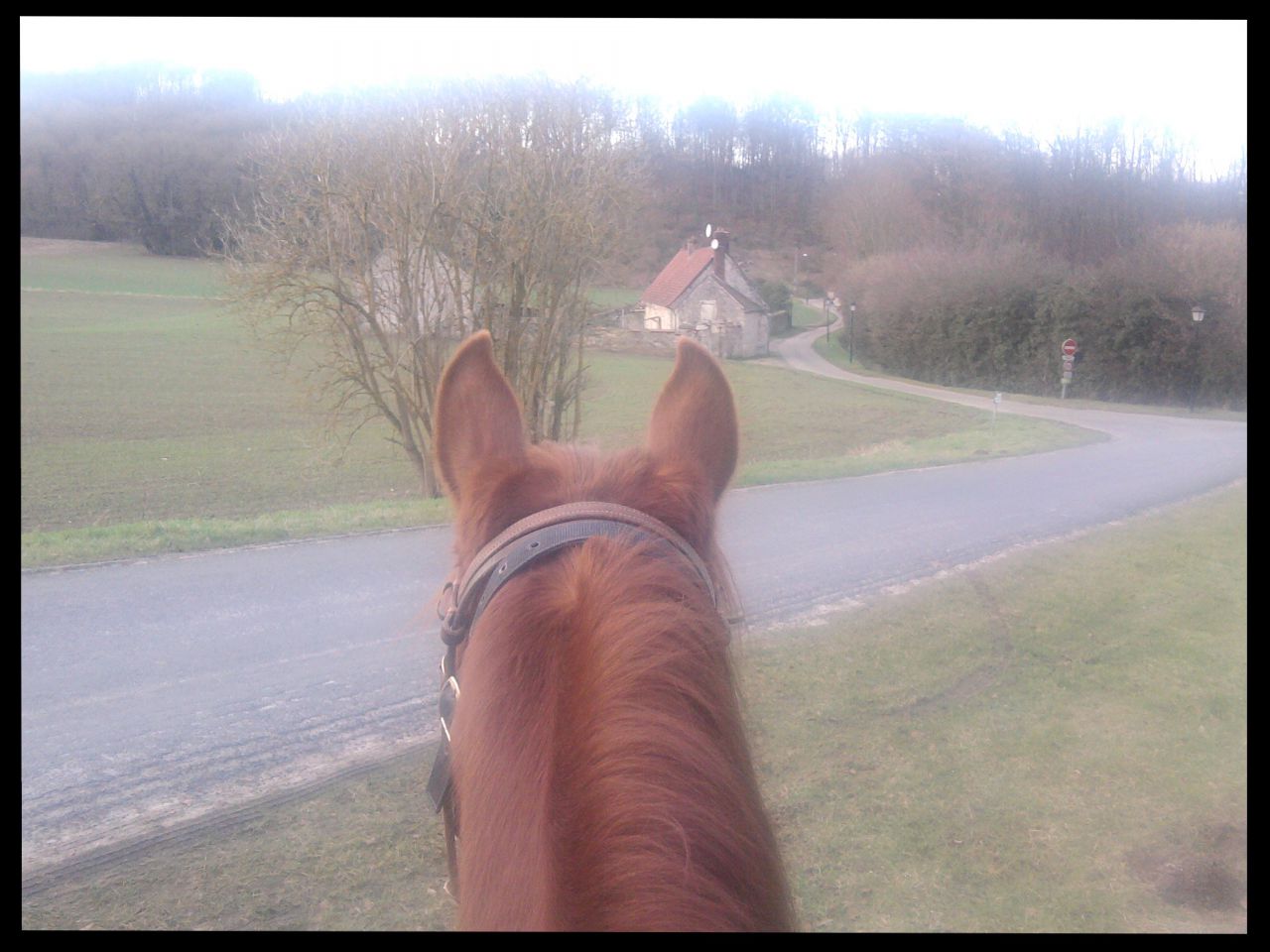 | Aujourd 'hui , enfin nous avons refait une ballade aprés 2 mois s 'en pouvoir sortir ( à cause du temps) nous avons fait 20 min tout seul pour rejoindre deux autre cavaliers ,loulou a été trés gentil ..on sais méme mit devant pour la ballade trop contente !!! pariel pour le retourre trés gentil ....quelque photos du chemin de retour désolée pour la qualitée ( prise de mon portable )