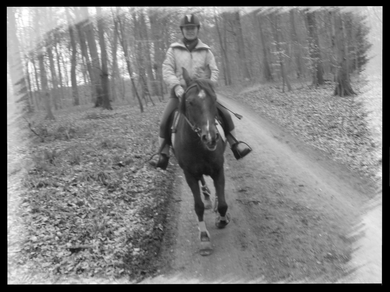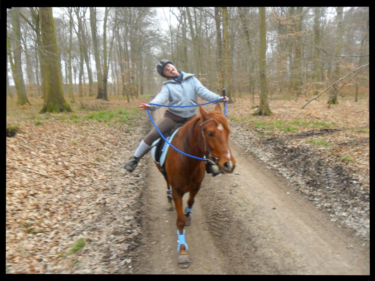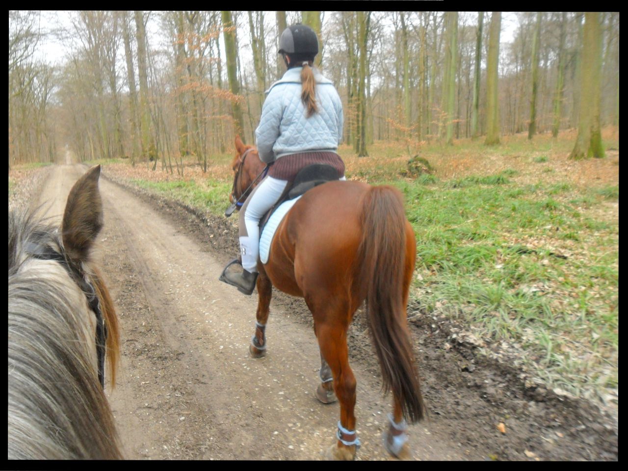 Hier aprés midi ballade dans la foret en compagni de razak ...on va dire ballade un peut sportif j'explique : nous arrivons en haut d 'un chemin ,il y avait un croisement et le cheval de razak à fait un énorme demi tour et moi ,loulou a fait pariel mais il m'a descendu le chemin au galop ,le petit coquin  En suite nous avons croiser un petit poney pie ( blanc et noir) et oui !!!les loulous pensaient que c 'était une vache qui se promener en foret et évidament avec le vent ,les feuilles qui s'envolaient autour de nous ...les bruits des tronçonneuses etc ...les pauvres loulous Faut pas oublier qu ils sont encore jeunes ..... Mais bon nous avons pus quand méme faire quelques galops En plus ,on s 'est apperçu que ma selle blessait loulou alors allez hop !!!! on va la changer ... Heuresement que razak est là ,merçi de ses consiels