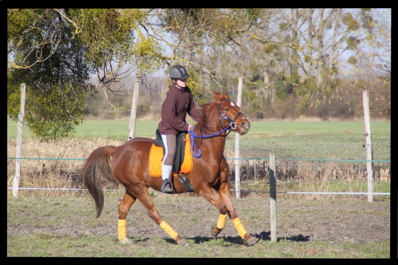 | coucou Des news de loulou .hier matin ,nous avons travailllié dans la carriére 15 min et ensuite trotting de 45 min dans les champs ...LE 6 MARS , nous fesons notre premiére course d'endurance et oui les choses sérieuses commençent