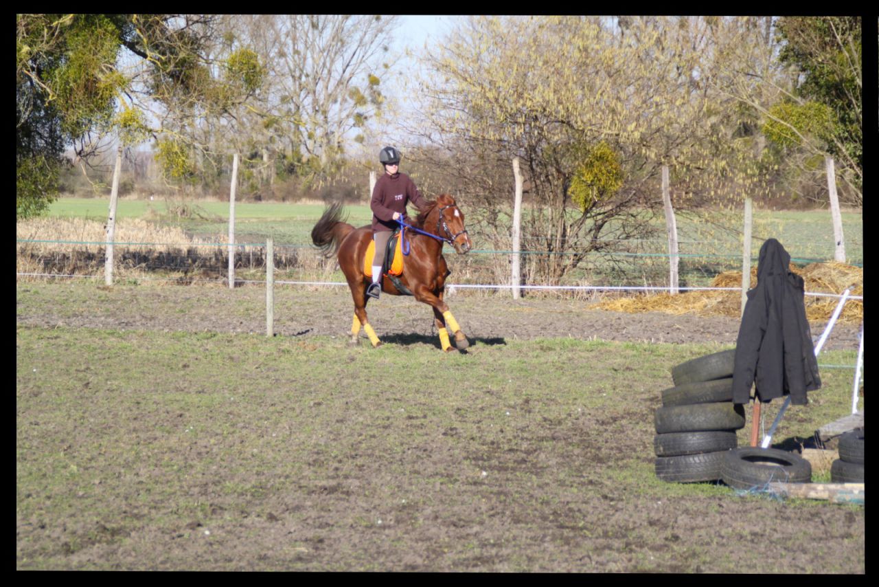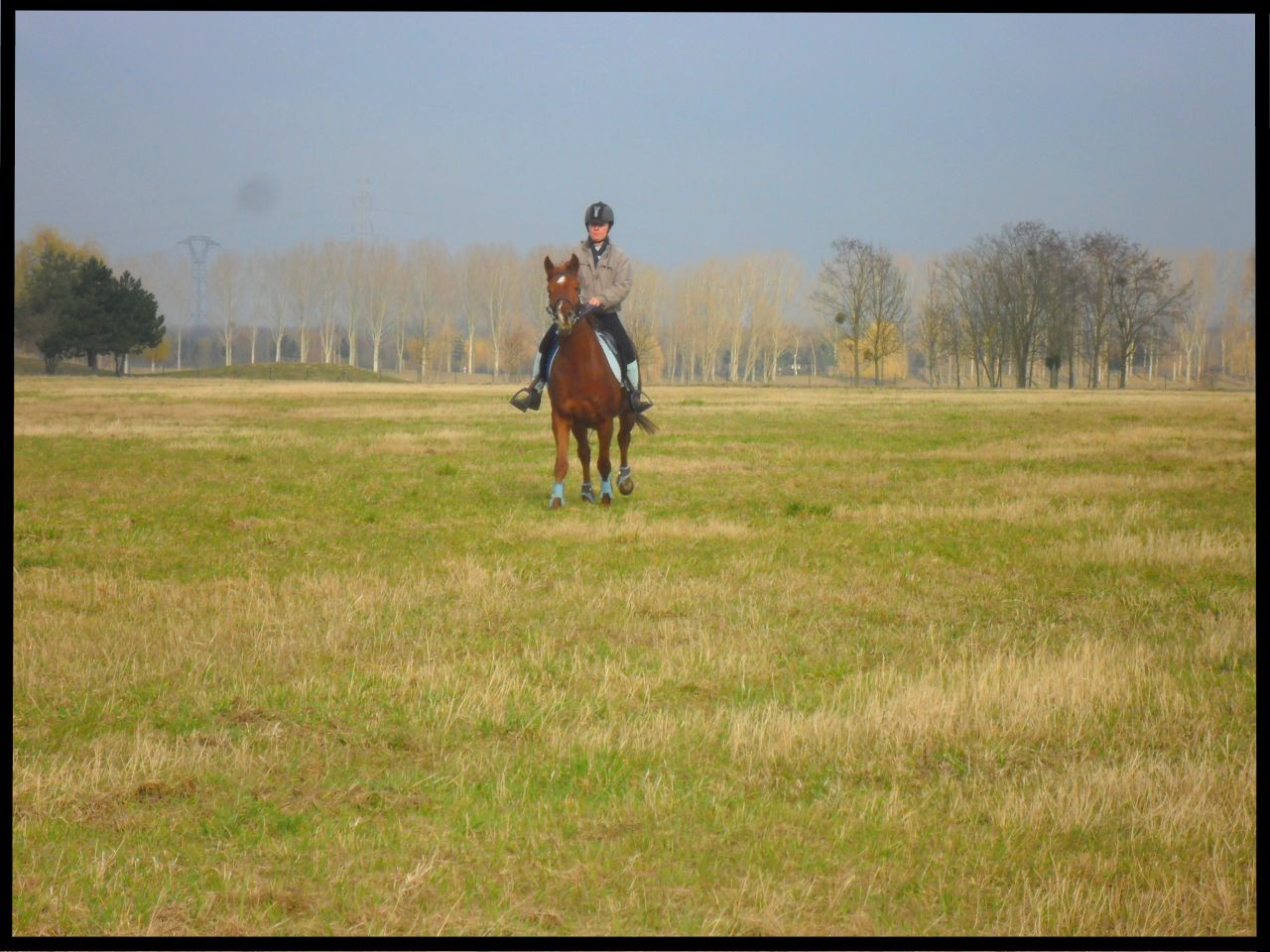 Dans la carriére nous avons fait les départ au galop .Départ à gauche nickel mais à droite c est à travailler ,ensuite quelques déplacement latéral..... et enfin le bonheur trotting dans les champs ... évidament tout seul loulou a henni plusieurs fois .il m'a fait juste un demi tour car monsieur n 'avait pas vu des dadas dans une pature .....