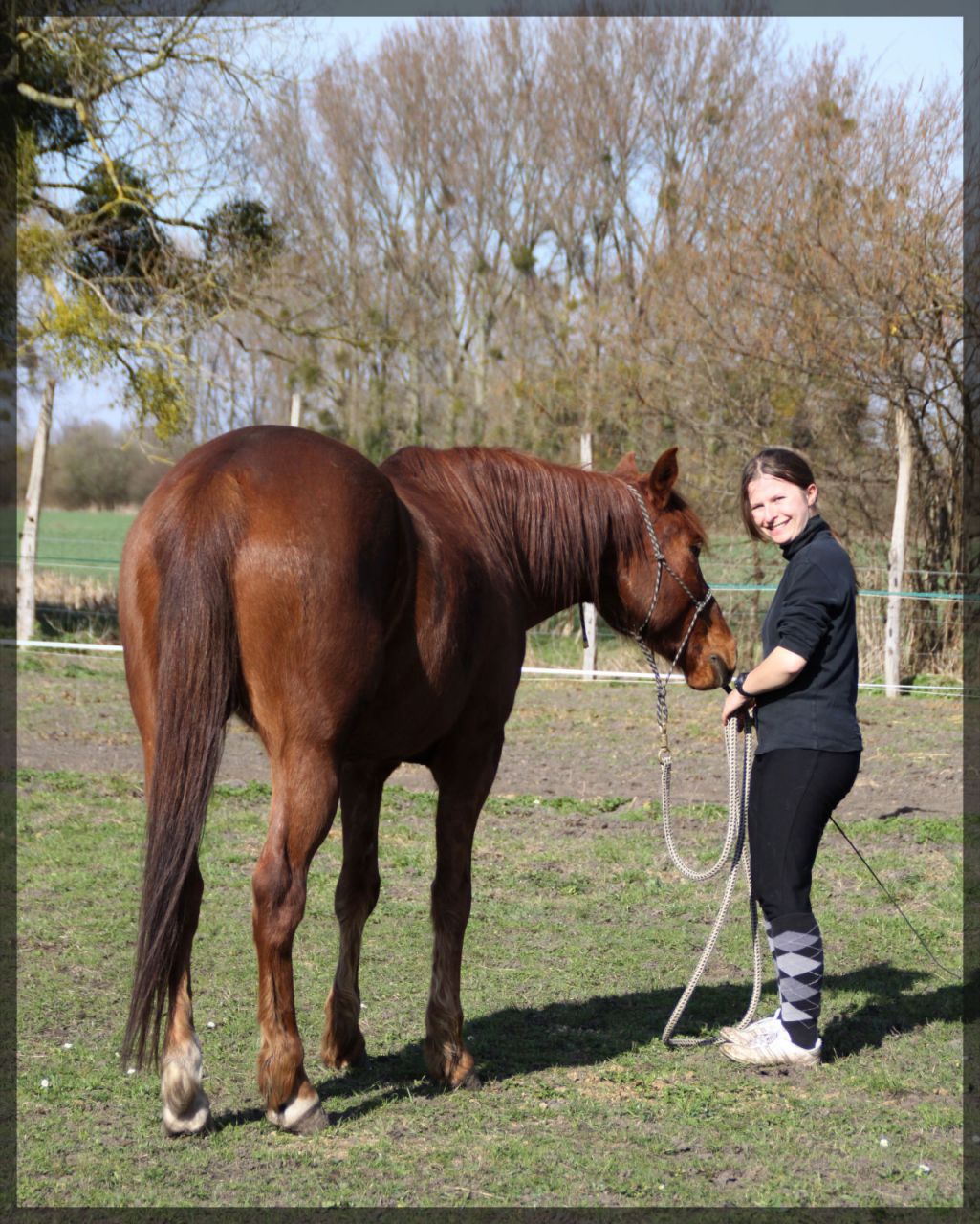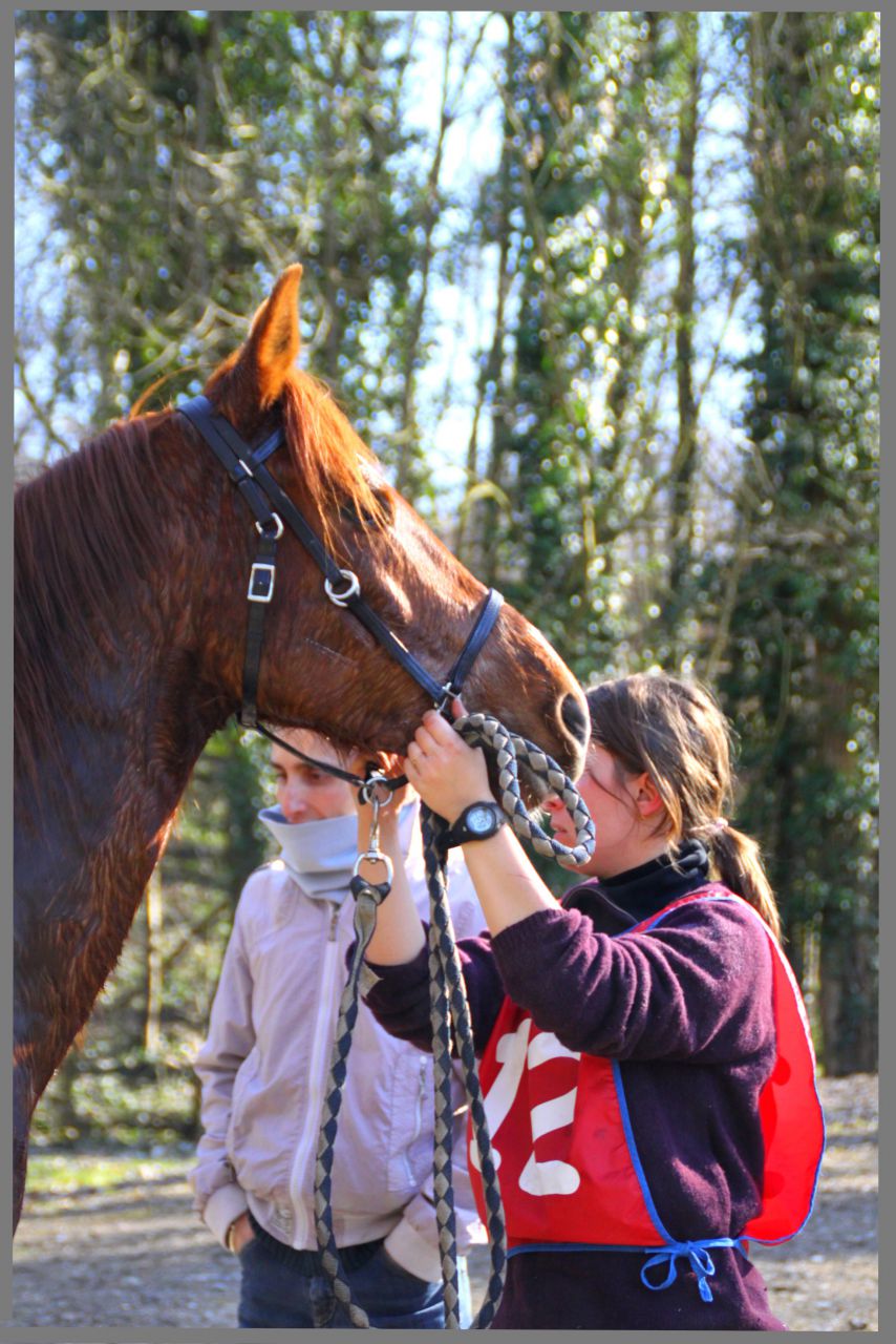 | Dire merci | Sandrine a dit de Rahir qu'il était bon élève, très appliqué et voulant faire plaisir S'entendent à merveille, cheval et cavalière Se sont bien trouvés |