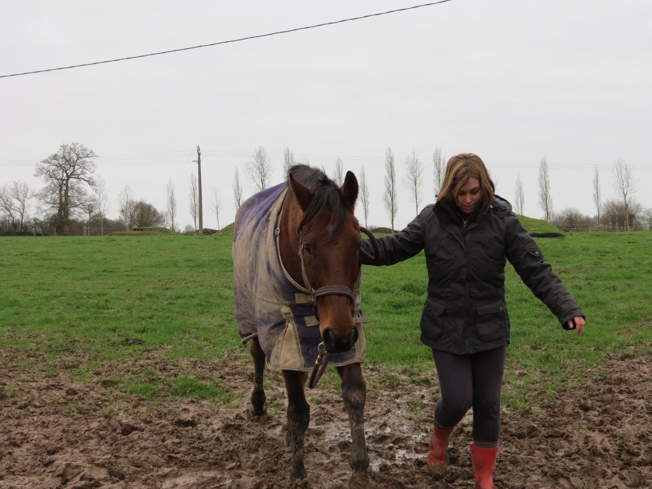 | Dire merci | Résumé du week end! ![]() Vendredi: Il était prévu que la copine qui s'occupe de Lasco soit là. On s'était arrangé pour qu'elle arrive un peu avant moi, qu'elle prépare et qu'elle le détente. J'arrive à l'heure, elle est dans le manège. On papote un peu et elle me demande si en fin de compte, elle peut prendre Lasco pour un concours de dressage qui a lieu le 22 (dans 15 jours). Je lui avais déjà proposé, comme je ne peux pas le faire et que son cheval préféré est arrêté pour une petite entorse! ![]() Cool... Bon, au boulot, 15 jours, c'est court. Elle veut faire la club 2 et il y a pas mal de choses à mette au point! Elle a déroulé 2 fois et le gros point noir sera les cessions à la jambes au trot... Je lui ai laissé Lasco toute la séance du coup, qu'elle puisse bosser tranquillement! Dimanche: J'ai réussi à convaincre mon chéri de venir avec moi au club! ![]() Donc photos et vidéos!!! ![]() En allant chercher Lasco au pré ![]() ![]() Il avait repéré Matthieu depuis le début! ![]() ![]() La boue est super profonde à l'entrée du pré... merci Lasco, je me tiens à lui pour pas me vautrer là dedans! ![]() ![]() Passage à la douche, il ne fait pas trop froid... Je ne le fais qu'une fois pas semaine, histoire qu'il est les pieds bien bien propré et que je vois si pas de bobos ou de gale de boue... Mmmm, je vais m'amuser au pansage! ![]() ![]() Petit essai de réglage photo... il y a encore des petits trucs à voir! ![]() ![]() |