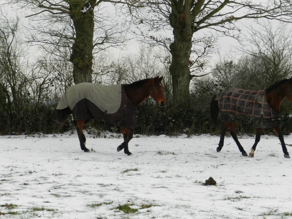 | Dire merci | Des nouvelles vite fait. Lucie a pu passer au club dans la journée mercredi (moins dangereux que le soir de prendre le volant), elle l'a longé. Elle y est retournée hier, elle l'a monté: travail sur des barres au sol et sur les arrêts. Parait qu'il a un nouveau jeu... se lever. Bon, c'est une fois arrêter, monsieur ne tient pas en place et veut repartir. Cavalière pas d'accord qui dit non; Lasco pas content qui se lève! Pas haut il parait et elle l'a enguelé bien comme il faut. Je la vois ce soir normalement, j'aurai plus d'infos. J'ai trop hâte d'y être d'ailleur et de pouvoir enfin rebosser mon cheval! C'est nul la neige. ![]() |