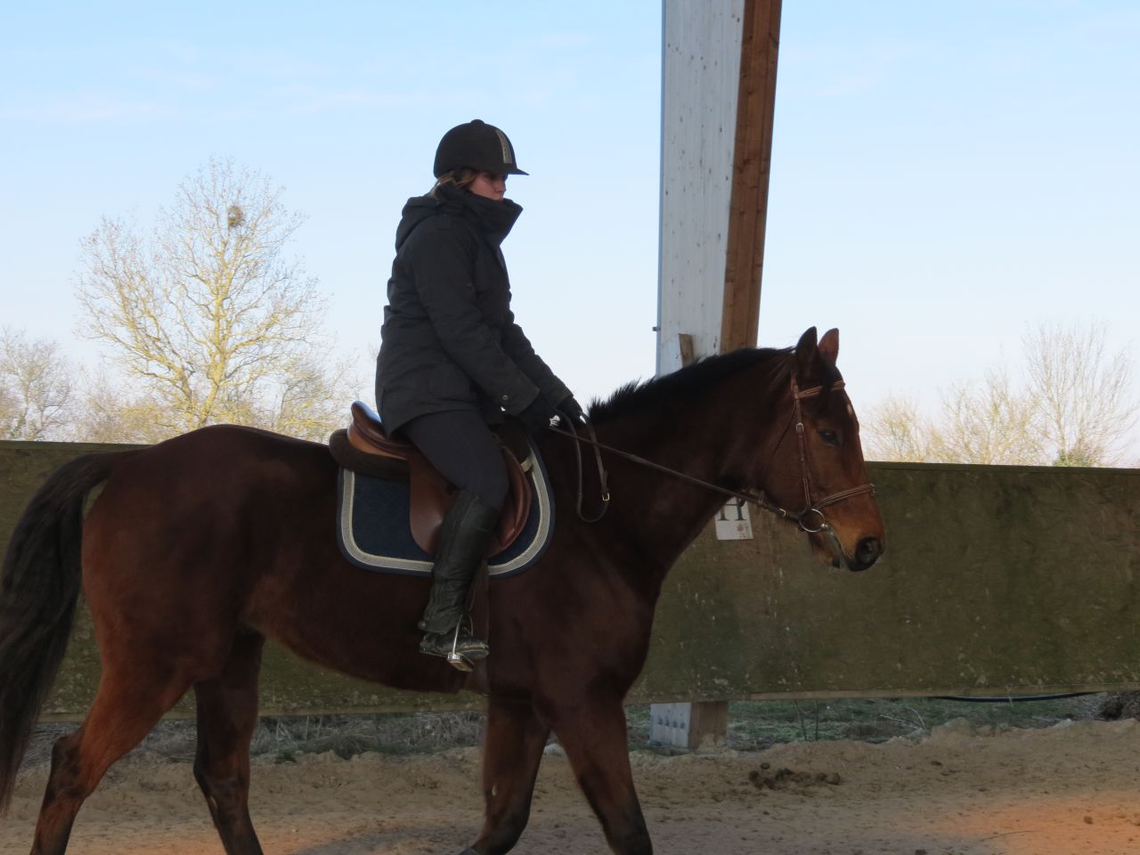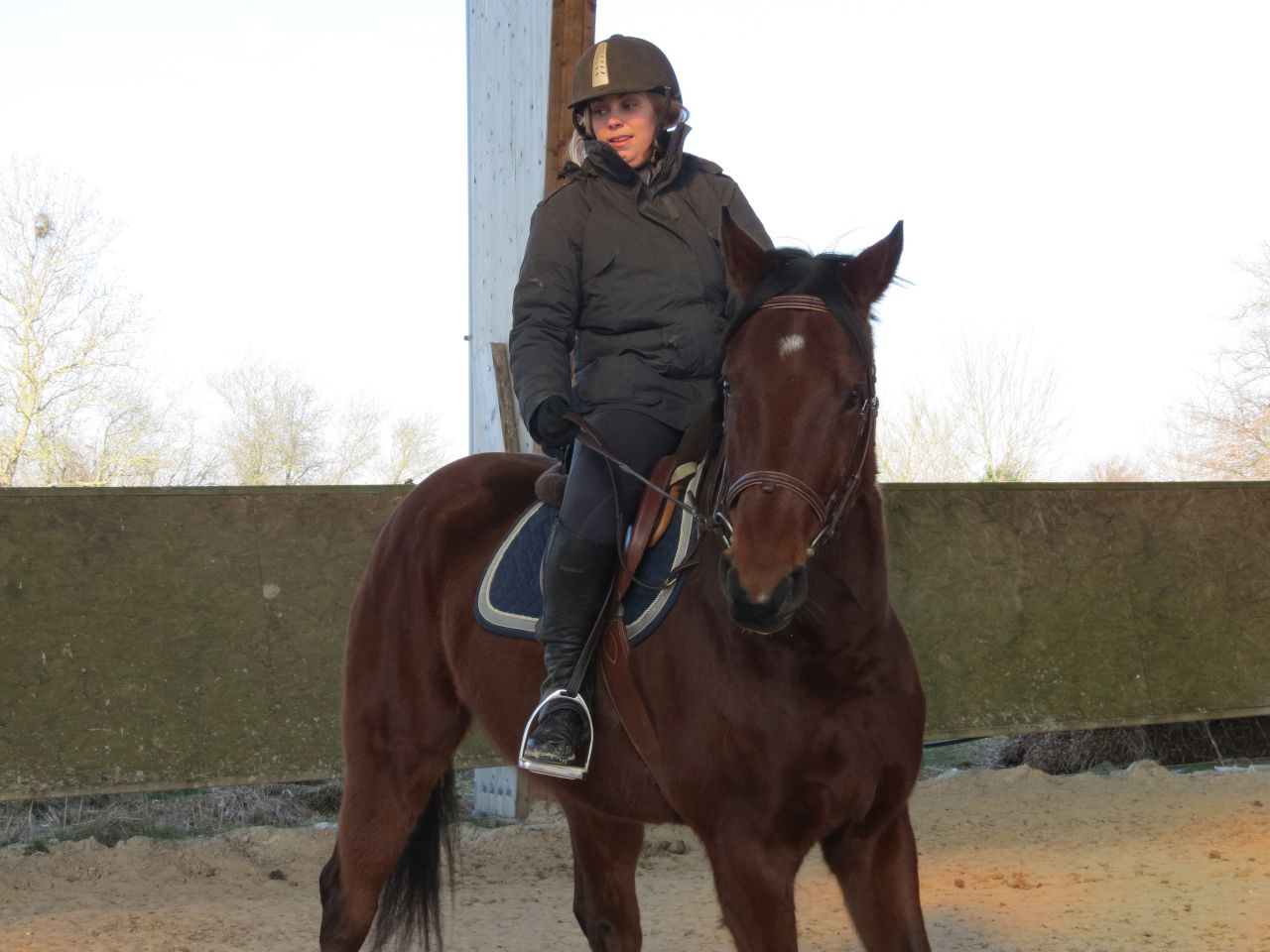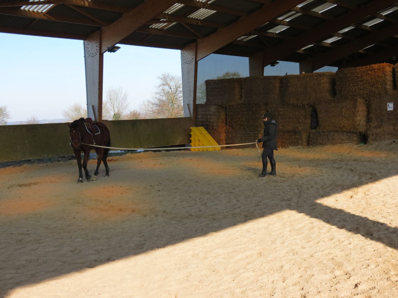 | Dire merci | Dans la 1ère pension où j'ai passé 6 mois, Lasco vivait dans un paddck, genre 30m² maxi. Il était ingérable, et je culpabilisais à mort quand je ne pouvais pas y aller pour le sortir et le défouler. Maintenant, dans cette pension, il est au pré, avec des copains et ses jours de "repos" où je ne le bosse pas, je sais que ça lui fait du bien, qu'il y ait bien et que s'il y a un problème, la surveillance est au top. Là, entre mes vacances de Noël et le fait que j'ai été pas mal malade, je n'aurai pas culpabilisé de le laisser au pré à rien faire. Mais il était en train de grossir et c'était vraiment le moment de le bosser pour qu'il prenne en muscle en qu'on progresse dans le travail! Donc le pied d'avoir quelqu'un de confiance pour pallier à mes absences! Franchement, je ne regrette pas! |