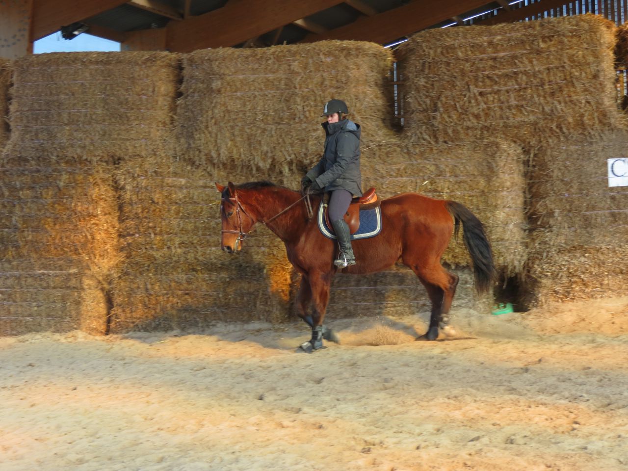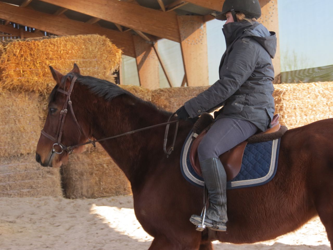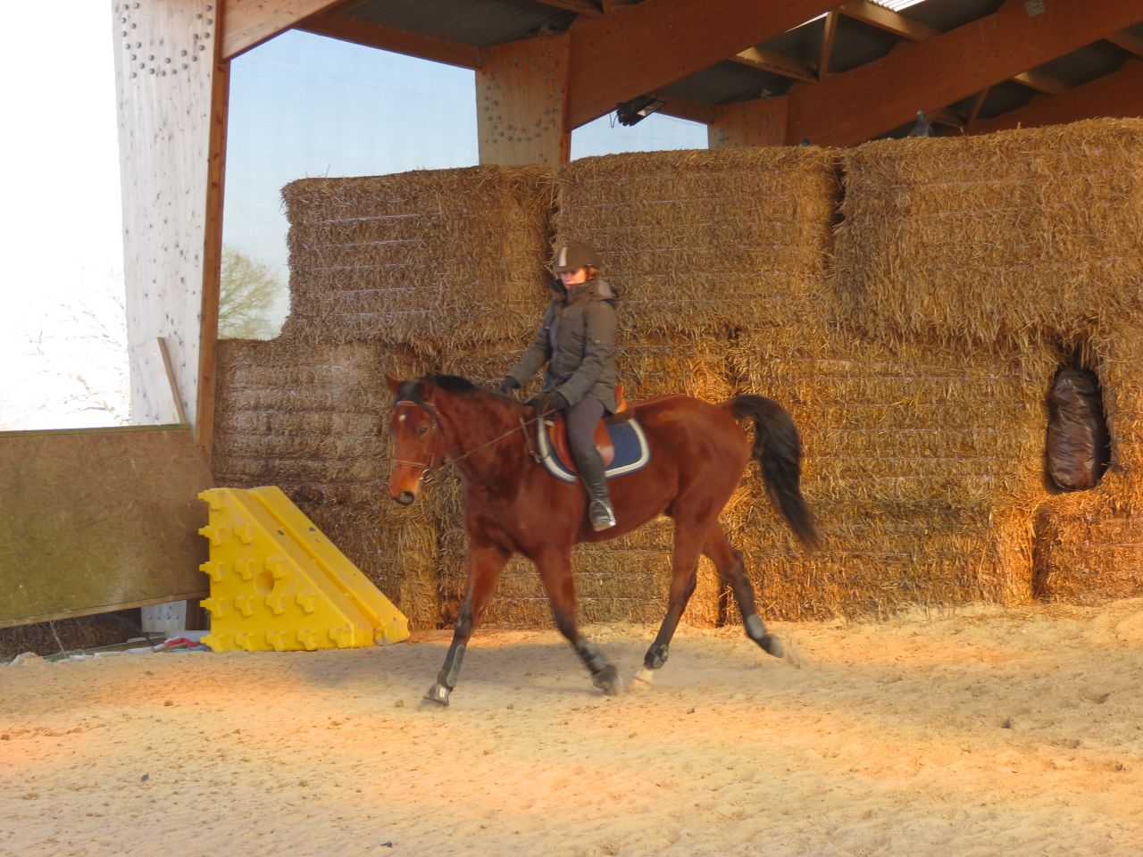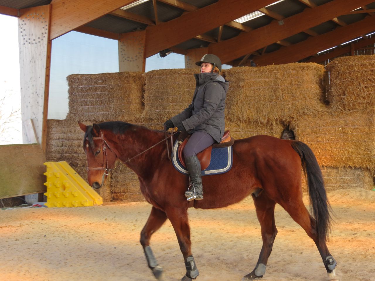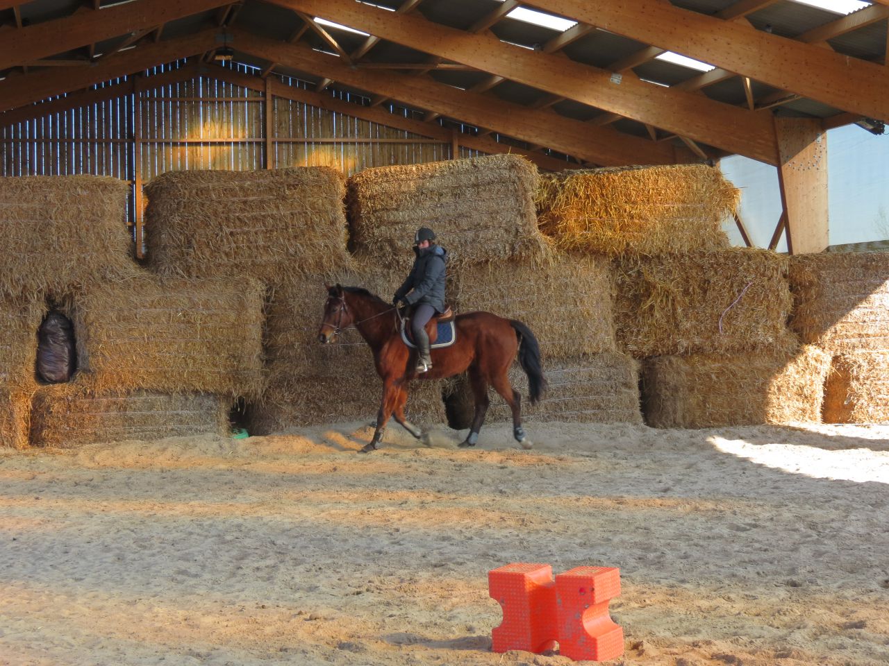 | Dire merci | Donc, le bonhomme michelin à cheval!![]() Après 15 jours, ça fait trop plaisir! ![]() Début de séance, j'essaye qu'il vienne se tendre. Pas facile. Je suis complètement rouillé, à chercher ma place. Lasco, je le sens très speed, dans une attitude haute qu'il va garder un bon moment... ![]() Du moment que ça avance... Sauf que bien sur, en attendant, moi je ne suis pas du tout à ma place! ![]() ![]() ![]() ![]() Non, non, je n'ai même pas froid! ![]() ![]() Oups, un peu trop fermé là! ![]() ![]() A gauche, j'ai fini par obtenir de bonnes choses. Mais je galérais tout le temps à droite. ![]() ![]() La main qui tire! ![]() ![]() ![]() Alors là, aucune idée de ce que je fais, il n'y a rien qui va! ![]() ![]() Heureusement, on finit sur les mêmes bonnes choses qu'à la main plus facile. ![]() Vu que c'était une reprise pour moi, que j'avais longé avant et que je voulais que Jess monte dessus, j'arrête là. |