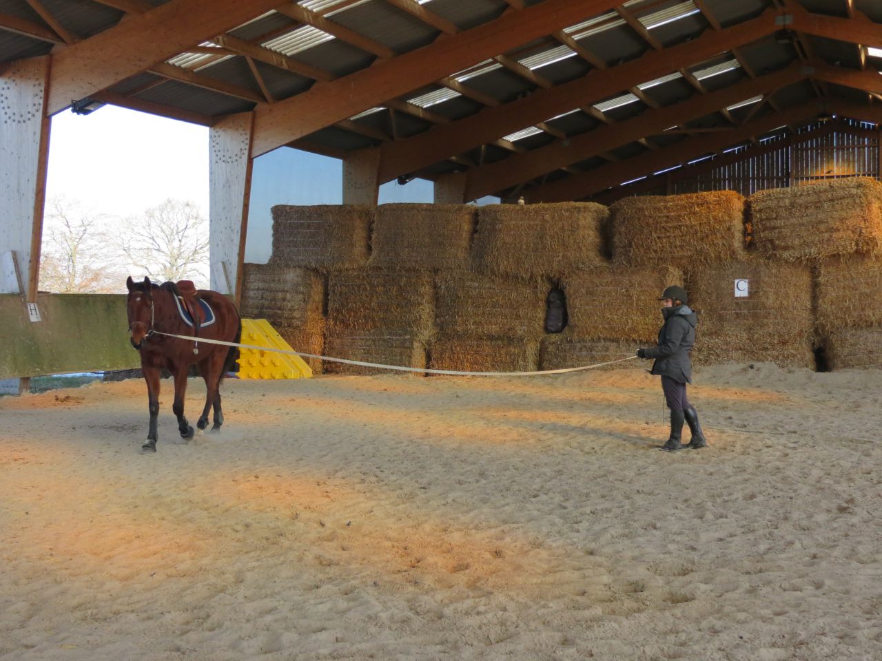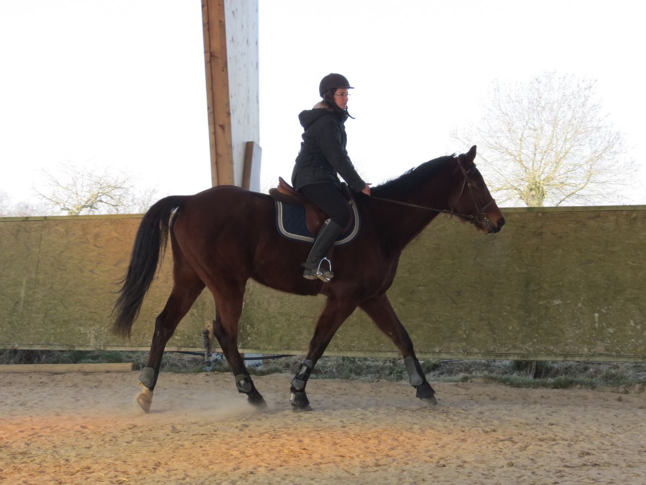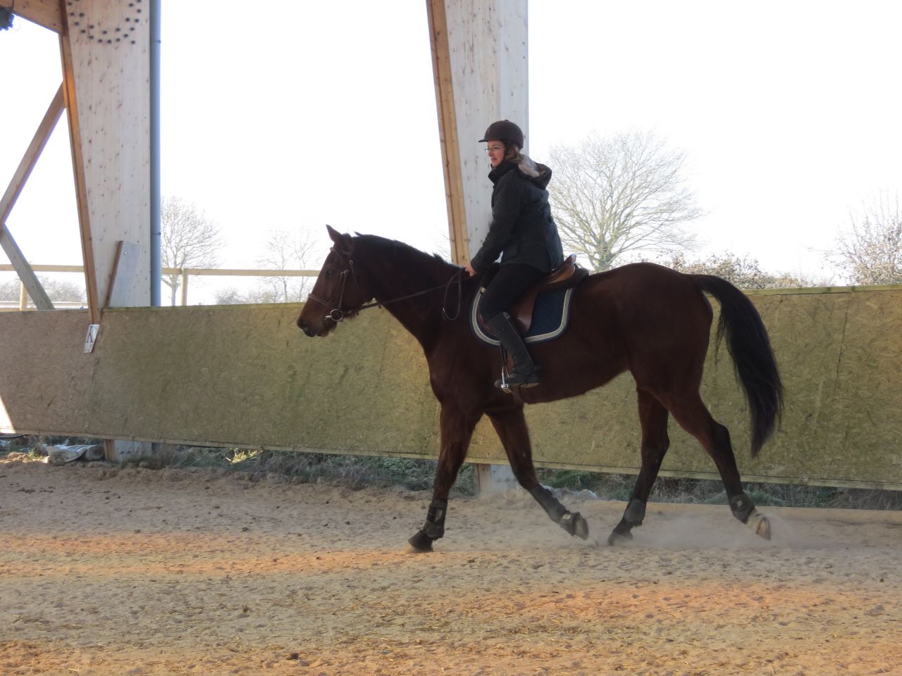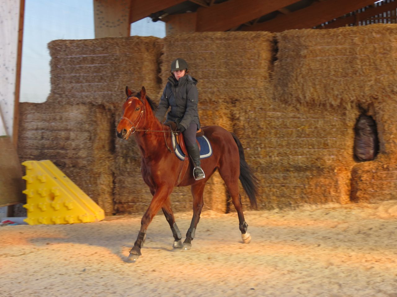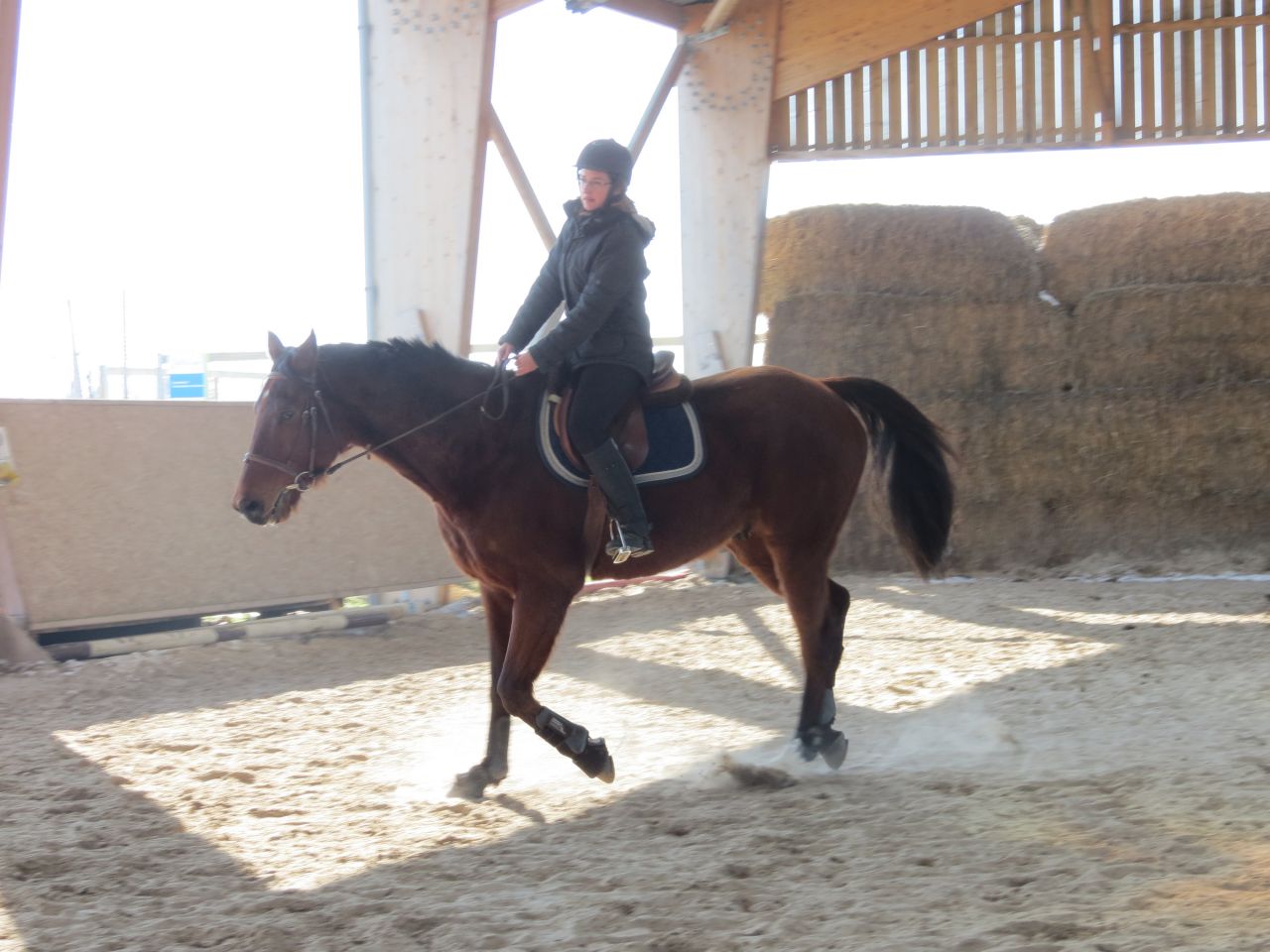 | Dire merci | Donc, le bonhomme michelin à cheval!![]() Après 15 jours, ça fait trop plaisir! ![]() Début de séance, j'essaye qu'il vienne se tendre. Pas facile. Je suis complètement rouillé, à chercher ma place. Lasco, je le sens très speed, dans une attitude haute qu'il va garder un bon moment... ![]() Du moment que ça avance... Sauf que bien sur, en attendant, moi je ne suis pas du tout à ma place! ![]() ![]() ![]() ![]() Non, non, je n'ai même pas froid! ![]() ![]() Oups, un peu trop fermé là! ![]() ![]() A gauche, j'ai fini par obtenir de bonnes choses. Mais je galérais tout le temps à droite. ![]() ![]() La main qui tire! ![]() ![]() ![]() Alors là, aucune idée de ce que je fais, il n'y a rien qui va! ![]() ![]() Heureusement, on finit sur les mêmes bonnes choses qu'à la main plus facile. ![]() Vu que c'était une reprise pour moi, que j'avais longé avant et que je voulais que Jess monte dessus, j'arrête là. |