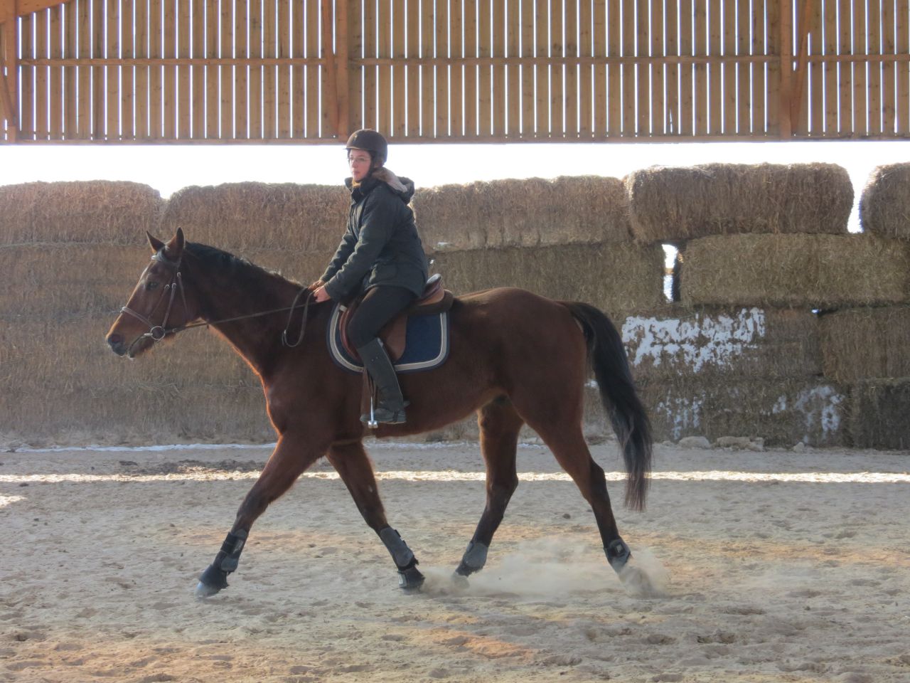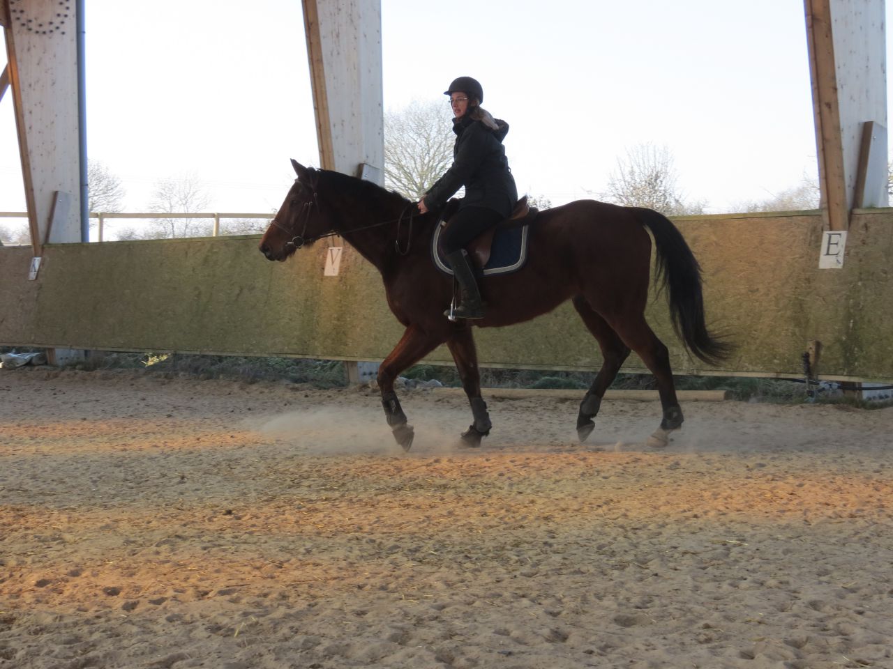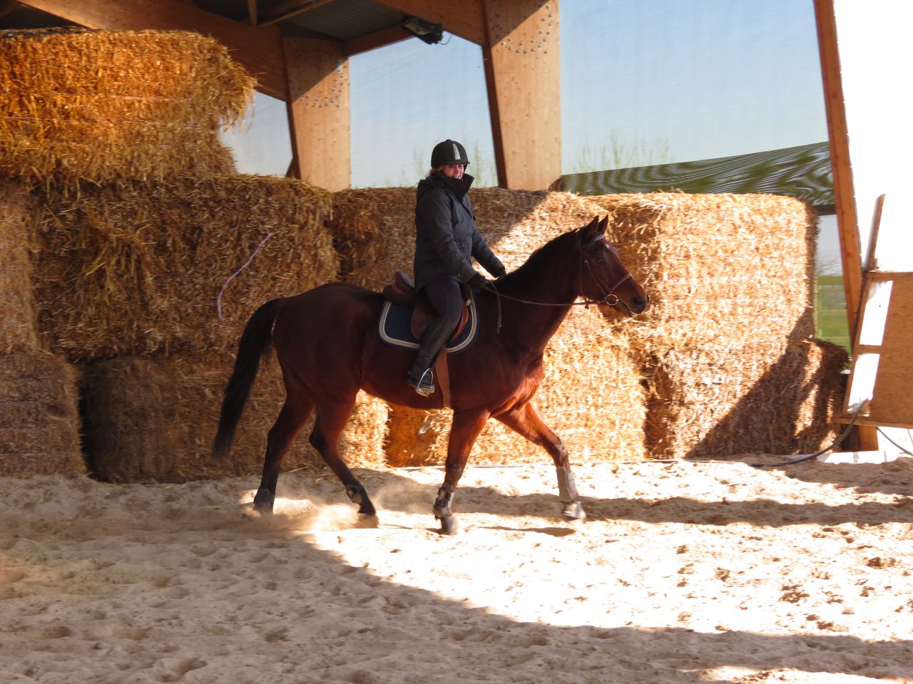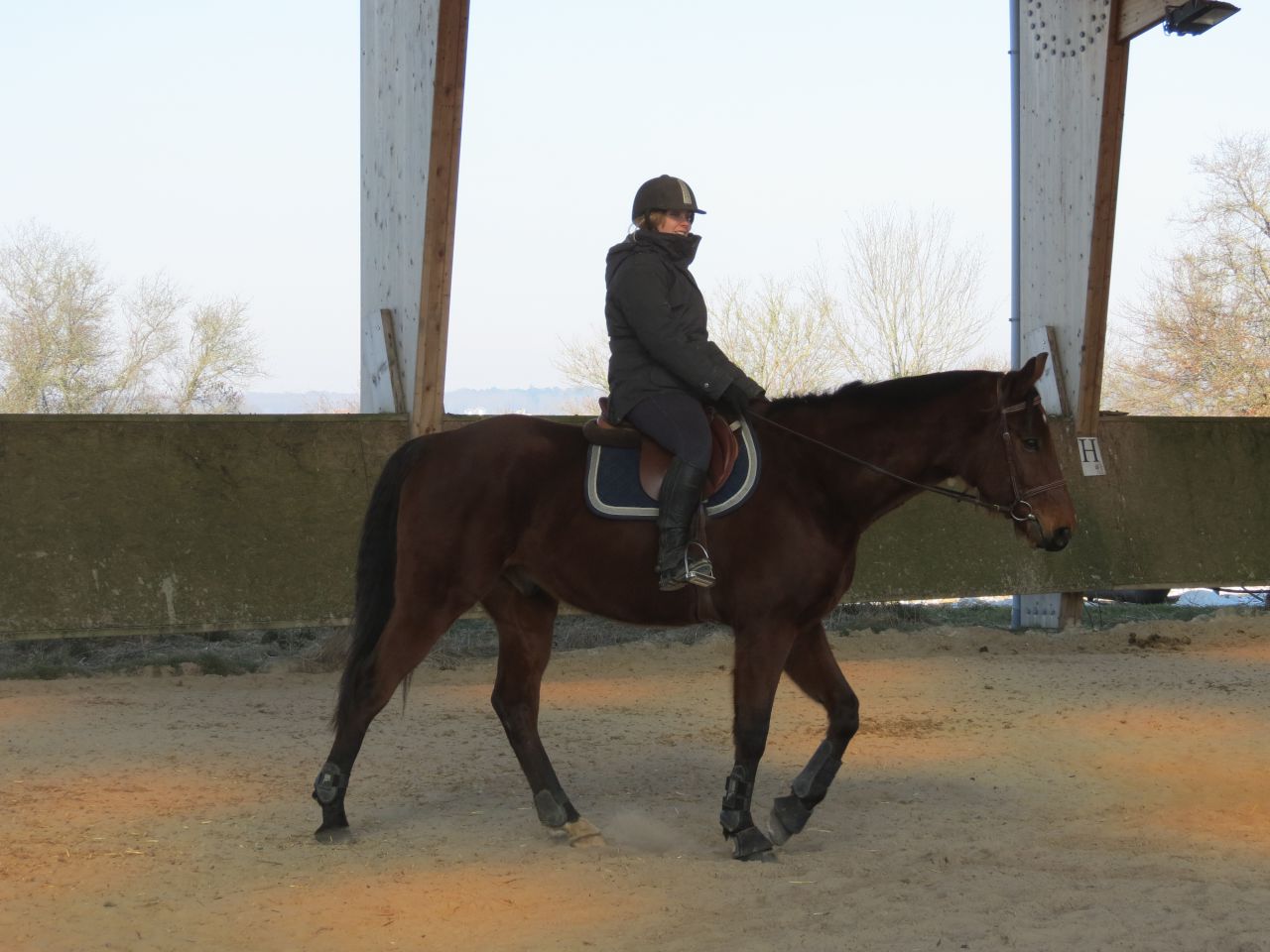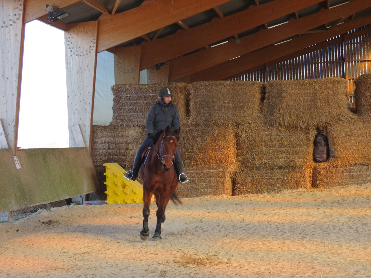 | Dire merci | Donc, le bonhomme michelin à cheval!![]() Après 15 jours, ça fait trop plaisir! ![]() Début de séance, j'essaye qu'il vienne se tendre. Pas facile. Je suis complètement rouillé, à chercher ma place. Lasco, je le sens très speed, dans une attitude haute qu'il va garder un bon moment... ![]() Du moment que ça avance... Sauf que bien sur, en attendant, moi je ne suis pas du tout à ma place! ![]() ![]() ![]() ![]() Non, non, je n'ai même pas froid! ![]() ![]() Oups, un peu trop fermé là! ![]() ![]() A gauche, j'ai fini par obtenir de bonnes choses. Mais je galérais tout le temps à droite. ![]() ![]() La main qui tire! ![]() ![]() ![]() Alors là, aucune idée de ce que je fais, il n'y a rien qui va! ![]() ![]() Heureusement, on finit sur les mêmes bonnes choses qu'à la main plus facile. ![]() Vu que c'était une reprise pour moi, que j'avais longé avant et que je voulais que Jess monte dessus, j'arrête là. |