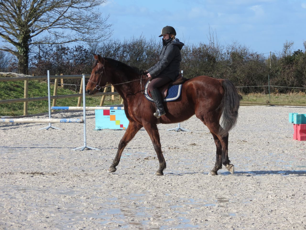 | Dire merci | Bon, pour le concours, j'avais oublié un détail... le transport... Donc pas sur encore que je puisse l'emmener. Sinon, il a bossé jeudi avec Lucie, sur les transitions et galop à faux. Fin de séance sur les transitions dans la diagonale galop-trot-galop. Il était top il parait! ![]() Vendredi, séance avec moi. Détente en manège et ensuite, direction la carrière! Trop bien de retourner dans cette carrière. Travail sur les transitions dans l'allure, au pas et au trot. Au galop, beaucoup trop de courbatures de ma séance de mise en selle de mecredi! J'arrivais à l'avoir dans un tout petit galop, mais pour allonger, je me contracte trop donc ça marche pas. A refaire.Dimanche, grand grand soleil! C'était super agréable! J'ai des photos et des vidéos de ma séance. Détente tranquille. Problème de mains pour ma part. J'avais vraiment du mal à les garder à leur place. Lasco super bien en avant donc j'ai bossé sur les départ au galop de l'arrêt. Dur pour moi (de l'avoir dans une bonne attitude à l'arrêt pour avoir un départ correct) et lui, au top! ![]() Grans soleil et ciel bleu! ![]() ![]() ![]() La séance ![]() ![]() ![]() ![]() ![]() ![]() ![]() *** à suivre *** |