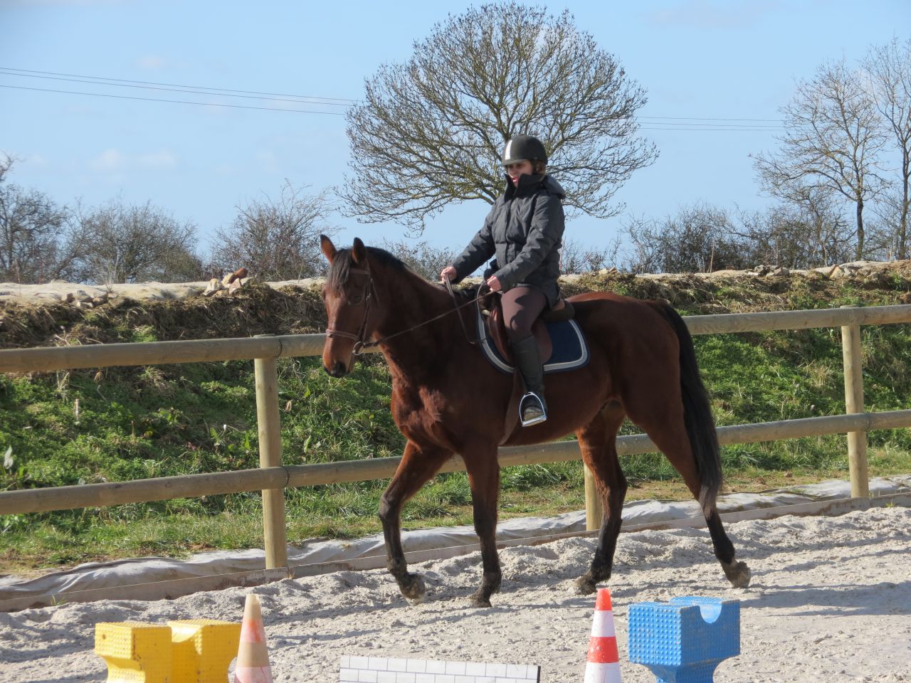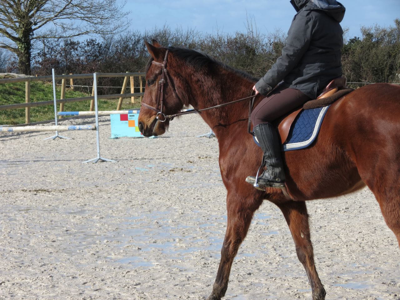 | Dire merci | Oh, bah merci, ça fait plaisir! Je ne voyais pas tant de progrets moi là dessus! Si ce n'est les départs au galop qui me plaisait bien! tata, PFf la chance d'avoir une piste extérieure On avait "que" un manège aussi pendant tout un moment. La carrière a été construite à la fin de l'été. Franchement, trop le pied d'avoir ça! Bon, elle n'est pas encore éclairé donc on n'en a pas trop profité cet hiver mais là, avec les jours qui rallongent tout doucement, on va de nouveau en profiter! ![]() fashionnetta, son attitude est plus souvent est plus longtemps vraiment bien! Ca, c'est vraiment le truc qui me fait le plus plaisir dans notre progression à tout les 2! De toute façon, c'est vraiment plus agréable de monter un cheval qui vient se tendre et se poser sur son mors plutôt que, comme avant, un cheval qui discute le mors sans cesse et qui se met à l'envers! ![]() zenzile, et pour la descente de jambes aussi c'est vachement mieux. Ca aussi ça me plait! Bon, au galop c'est pas gagné hein, mais promi je vais essayer de galoper un peu plus sans pédales pour descendre tout ça! Et pour les bras... mon éternel contraction du haut du corps... Et j'avoue ne pas trop avoir bossé là dessus dernièrement. Jess, Bestline, fraise, merci! |