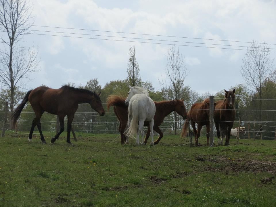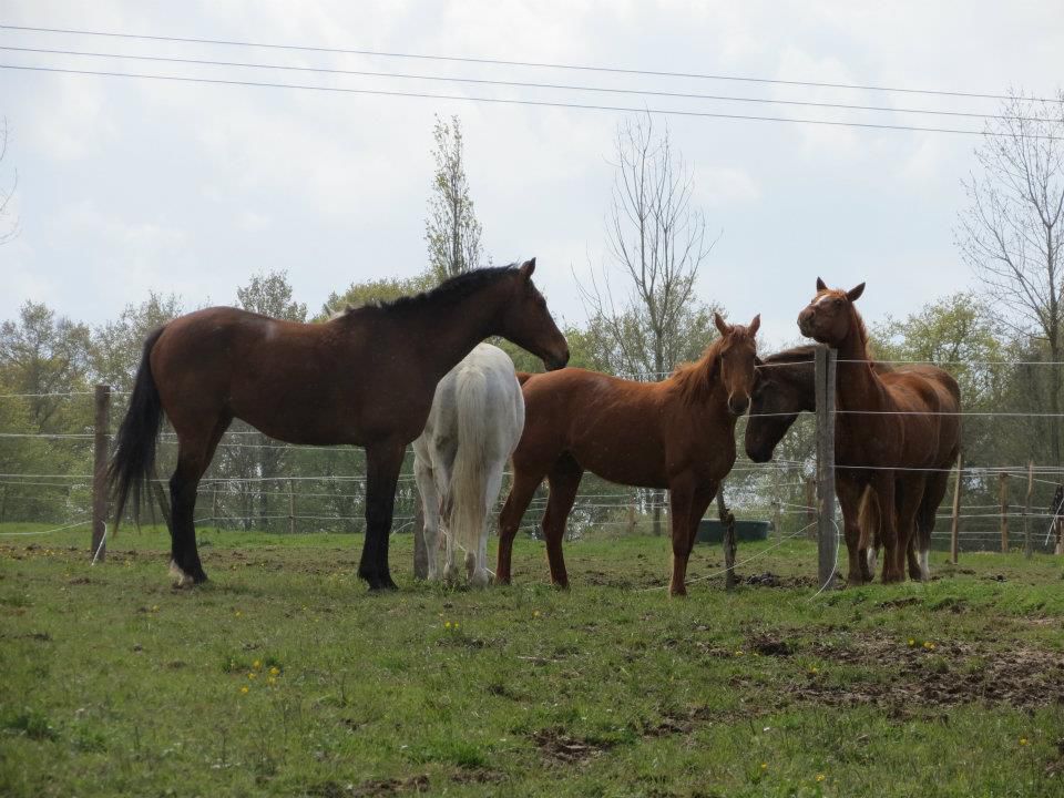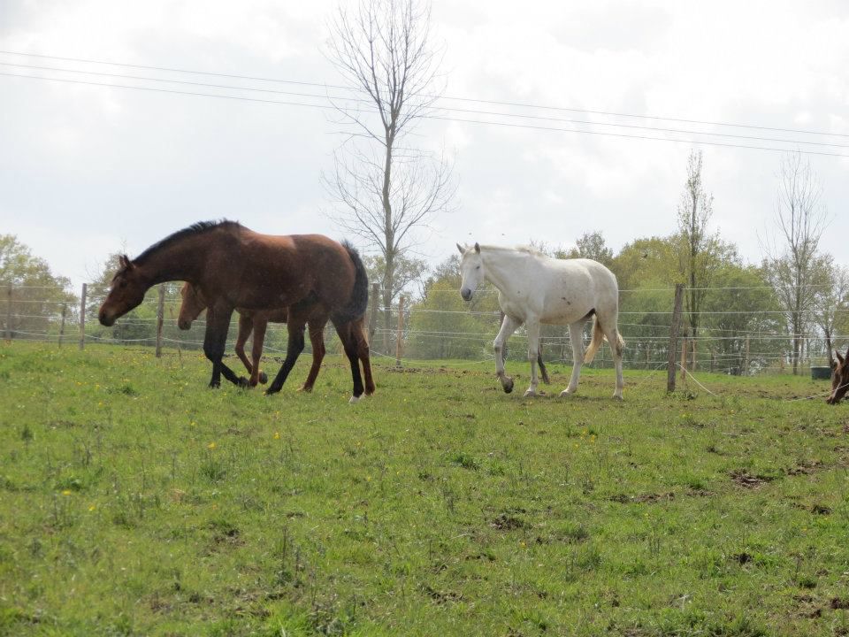 | Dire merci | marsu, il m'arrive encore de longer parfois avant de monter quand je le sens trop foufou. En général, ça le calme bien. Pareil, en hiver quand il fait extrèmement froid, je l'utilise en échauffement. Là, la petite contraction que j'ai l'impression de sentir, c'est la même au début et à la fin de la séance. Peut être que je me fais des idées, je ne suis pas très forte pour ce qui est de ressentir les choses à cheval , mais j'ai vraiment l'impression qu'il n'est pas aussi délié dans son dos qu'il a pu être.Mais comme l'ostéo ça fait plus d'un an, c'est une bonne occasion. Orge, niveau poid, il est top! Enfin! Il manque encore du muscle derrière, mais rien de grâve, ça se bosse. Après, pour savoir s'il est (enfin) stabilisé ou non, je te redis ça cet hivers, quand il aura tenu un an en bonne état! ![]() Sinon, pas de boulot pour Lasco hier. Déjà, le temps! Presque la tempête! Je ne sais pas à combien ça soufflait, mais en allant le chercher au pré, c'est sur que je n'arrivais pas à marcher en ligne droite tellement le vent me poussait! Et en curant les pieds, j'ai remarqué qu'un des fers aux antérieurs était tordu. Il a bougé au nveau de l'éponge et il y a un jour entre le fer et le pied. Trop peur qu'il forge au boulot et qu'il s'arrache le tout. Donc tant pis. Le maréchal du club passe ce matin, mais pas sur qu'il prenne le temps de s'occuper du fer de Lasco... En espérant que le mien puisse se déplacer rapidement. Message édité le 24/04/12 à 08:18 |