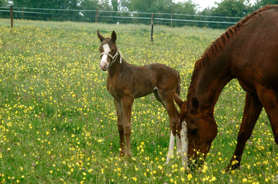 | Dire merci | Moi j'aime bien manipuler les poulains dès leur naissance. Ca permet moins de surprises pour la suite, ça familiarise avec l'homme et si pépin physique avec besoin de soins, ça évite les galère pour nous et le traumatisme pour le poulain. ![]() Il est bien mignon en tout cas |