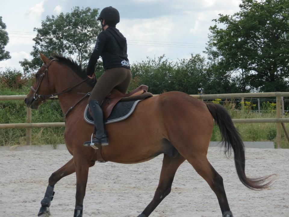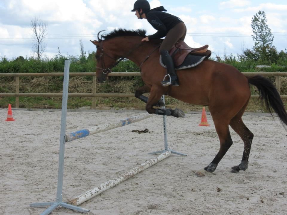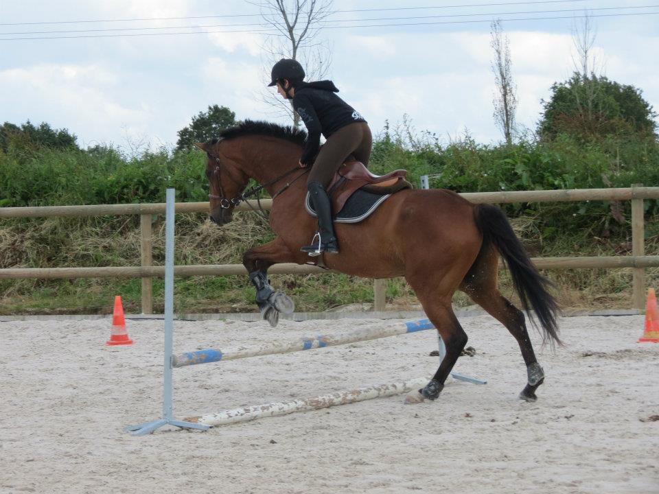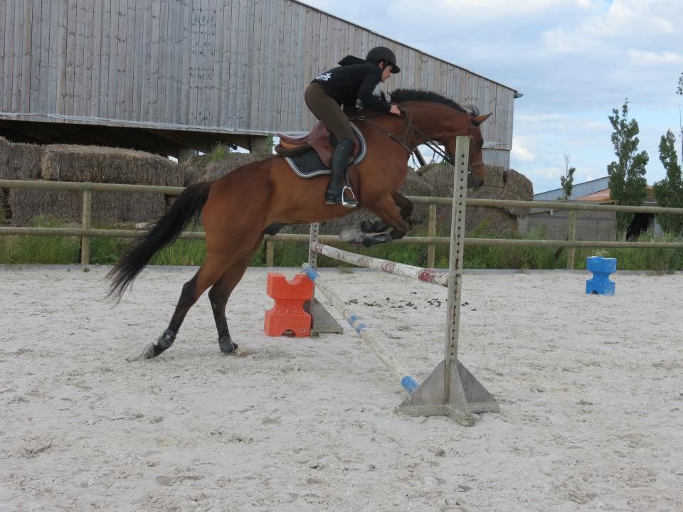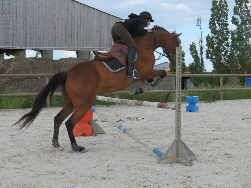| Dire merci | Le saut, il aime ça! Il a juste une proprio morte de trouille quand on atteind une certaine hauteur... 70 cm, c'est rien pour lui, pour moi, c'est autre chose. Avec cette cavalière, il a déjà enchainé 1m10 avec pour seul soucis le manque d'expérience. En isolé, 1m30 ou 35, je ne sais plus. Gégé, en effet, elle se méfie du passage de dos. Autant pour elle que pour Lasco! Après par rapport à l'année dernière, je trouve que dans ses abords, son dos est top. Elle passait un peu devant avant, là, elle n'est devant qu'une fois le saut enclenché. Pas pu prendre de vidéos, dommage. |