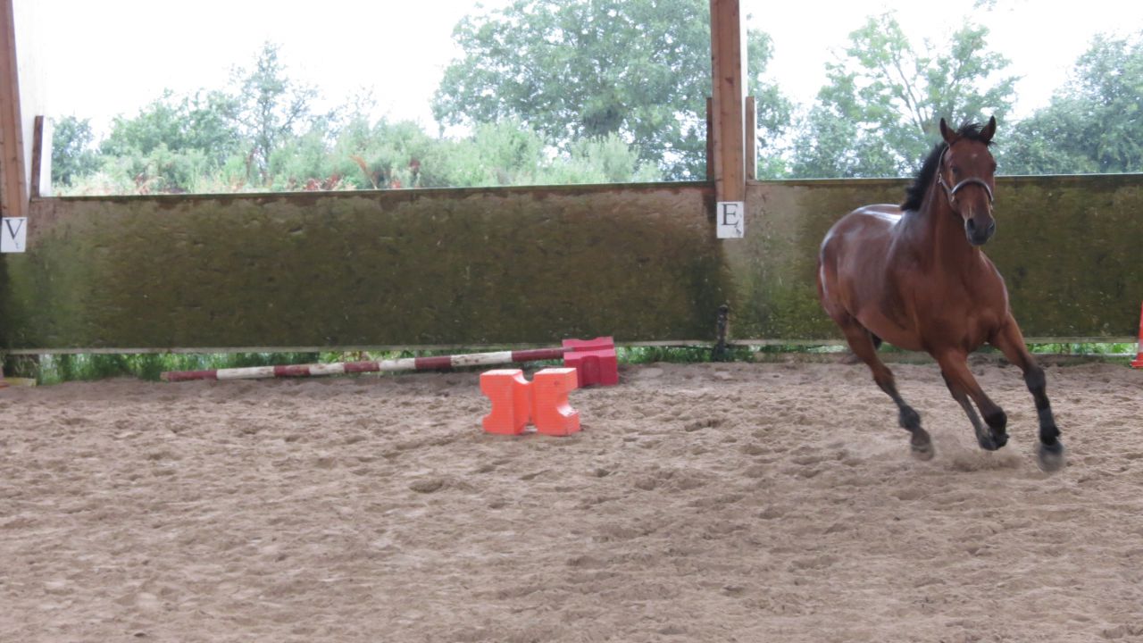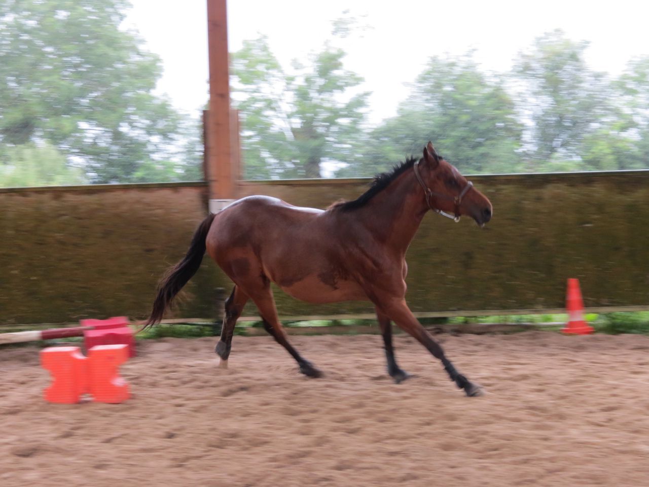 | Dire merci | Bon tout perdu, faut que je recommence... ![]() Donc jeudi, Lucie a bossé Lasco en longues rênes. 1ère frayeur pour elle, a un moment, il s'est arrêté et à commencer à tourner sur lui même sans qu'elle comprenne pourquoi. ![]() Les longues rênes se sont enroulées autour de lui mais Lucie a eu le bon réflexe. Elle l'a choppé par le mors et à réussi à le libérer. La suite du travail s'est bien passé. ![]() Hier, CP pour moi. jument_Noire m'a accompagné. Il pleuvait des cordes. J'ai laché Lasco en liberté dans le manège. Trop drôle, il sautait partout en restant bien à l'écoute. ![]() ![]() Heureusement qu'il ne m'a jamais envoyé ça quand je suis sur son dos! ![]() ![]() Cette tête! ![]() Et une vidéo! Ensuite, le cours en lui même! J'ai réussi à éviter la mise en selle parce que jument_Noire était là! Enfin ce matin, j'ai des courbatures comme après une mise en selle! ![]() Donc le cours, travail de barre au sol en cercle, au trot et au galop. Vous verrez sur les vidéos, j'ai galéré. Mains trop figées, c'est ça le pire! Et du mal à rester assise aussi bien que quand il n'y a pas de barres... Il repasse au trot par manque de jambes... et parce qu'il me dit merde à force de se prendre des coups dans la bouche. ![]() J'ai un peu ésité avant de les mettre, mais bon... Sinon, exo super intéressant, mais très fatiguant: Il faut travailler à chauqe foulées, tout le temps pour passer chaque barre correctement. J'ai vraiment galéré! Lasco lui, il aurait bien continuer encore et encore, il avait l'air de trop s'amuser! Message édité le 16/07/12 à 09:25 Message édité le 16/07/12 à 09:26 |