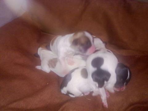 | Dire merci | Euuh, comment dire... du croisé porte et fenêtre. En faite, la maman est croisé Jack, Boston et une autre race de chien genre York. ![]() Et le père des chiots, c'est un type bichon mais noir et blanc (je déteste ce genre de chien, heureusement, il a un super caractère). Du coup, les chiots ressemblent à des larves blanches avec de grosses taches noires pour certains et marrons pour les autres. On dirait presque des bébés Jack... |