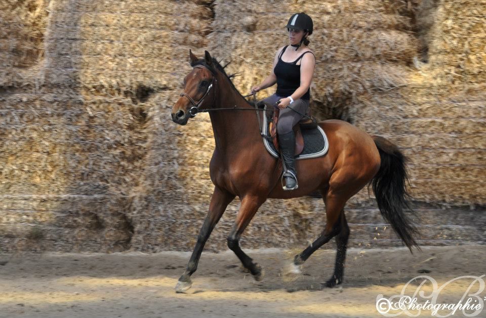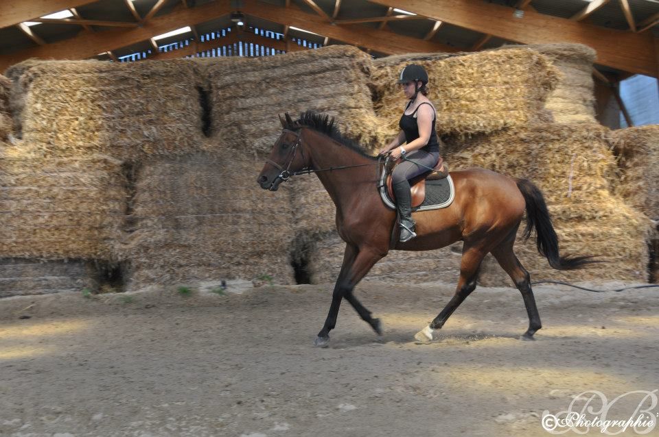 | Dire merci | Le dimance suivant, il fesait une chaleur de malade. Impossible de monter en pleine journée. Réveil à 7h et je suis partie monter dans la fraicheur. ![]() ![]() ![]() ![]() ![]() ![]() ![]() ![]() ![]() ![]() ![]() ![]() Sinon depuis, on a eu 2 cours particulier. Le 1er, on a retravaillé les transitions en gardant l'attitude arrondit et pareil pour les changements de mains. Un très bon cours. L'autre, on a travaillé les contrats de foulées au galop entre 2 barres au sol espacées de 20m. Galop normal, 5 foulées. Rassemblé, 6 foulées. Il a été extra, super à l'écoute dans les changements d'amplitude au galop. Sinon, il a continué de bosser en longues rênes et monté avec Lucie. Avec moi, travail monté, en longe, en liberté... Bref, je profite des vacances et on bosse pas trop mal! Voilà en gros pour les nouvelles! Je rattrape mon retard sur vos post dès que j'ai un moment (et je vais avoir de la lecture je crois! ) |