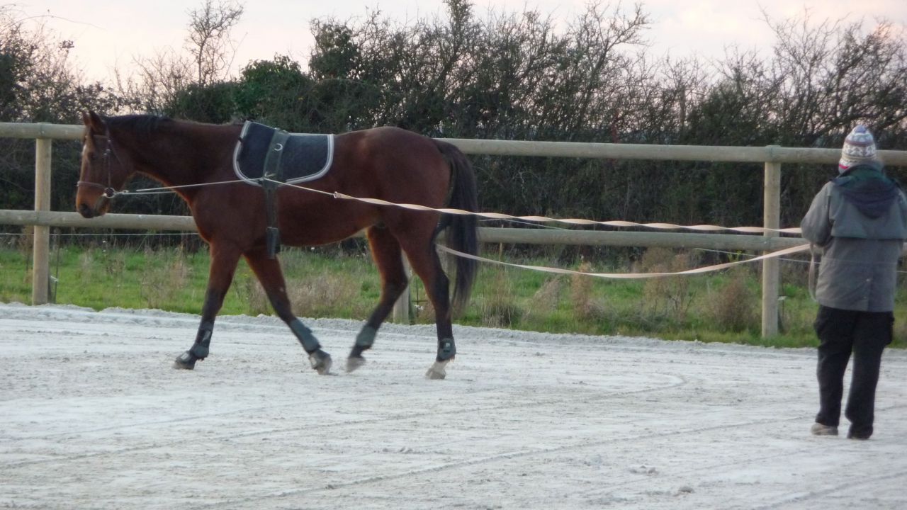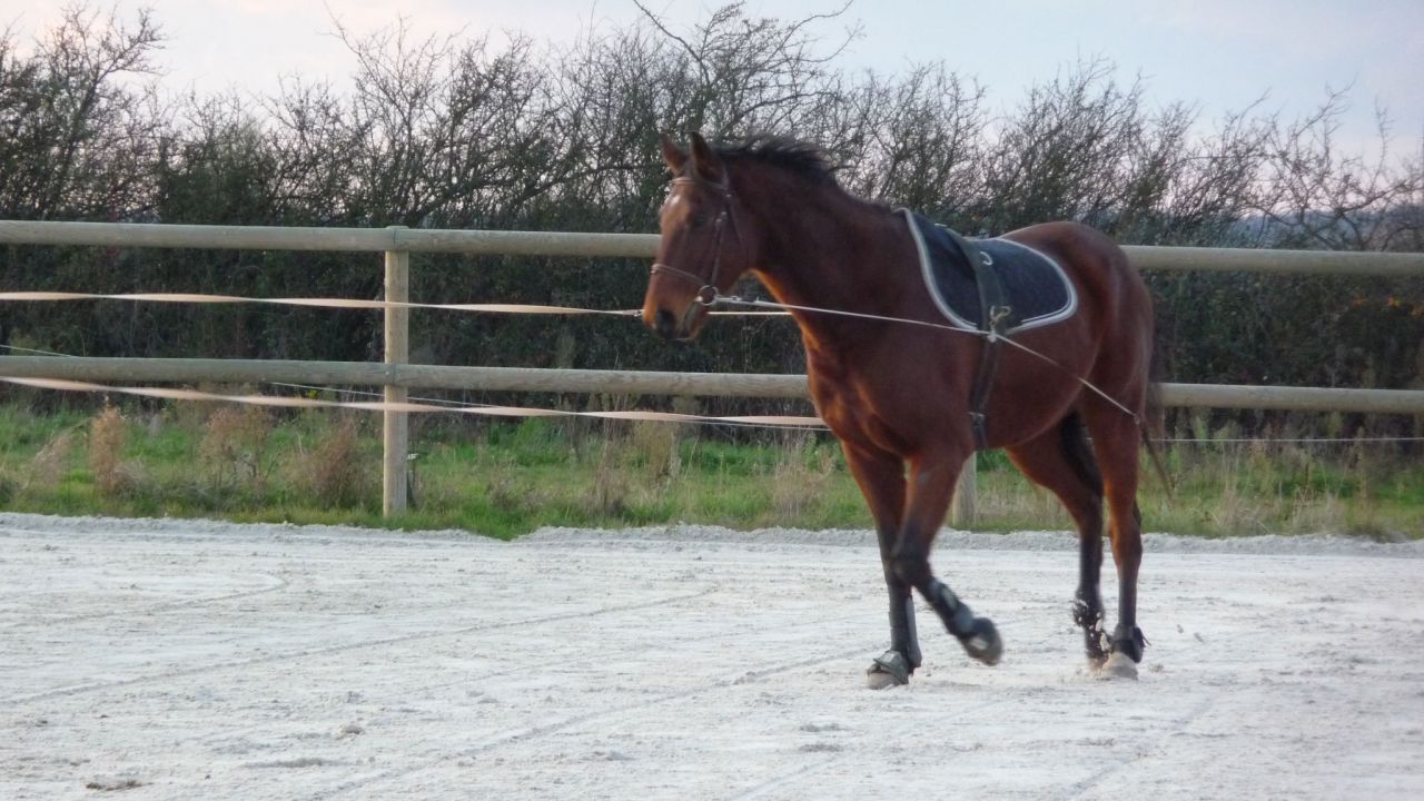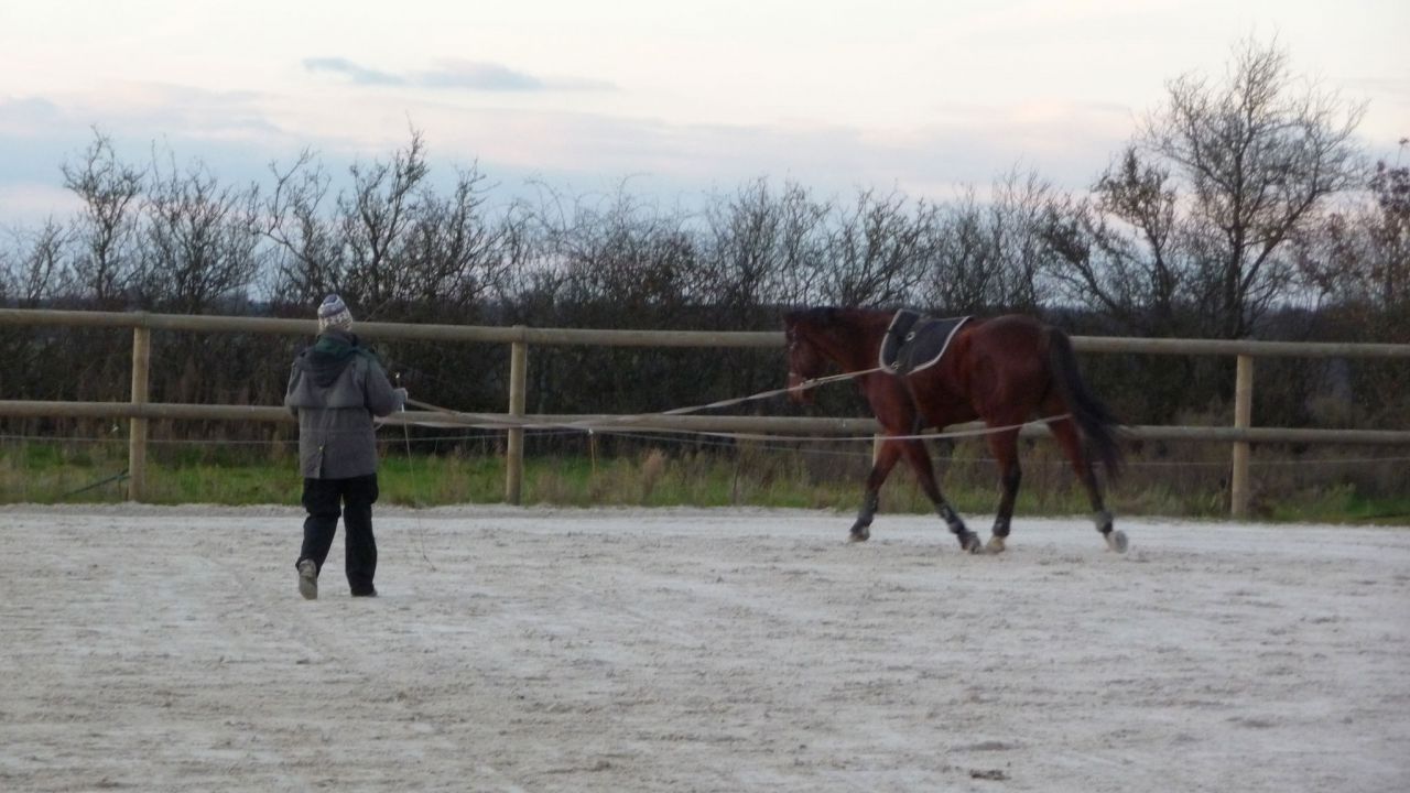 | Dire merci | Vendredi, pas de Lasco. Trop fatiguée, j'avais besoin de rester chez moi... Donc dimanche, après la pluie du matin, direction le club. Le temps est couvert, mais ça à l'air de tenir. Je prépare Lasco et direction la carrière. Une copine est là, elle va me donner un coup de main. Détente cool, rênes semi longue pour aller chercher l'extention. Ca fesait longtemps que je ne l'avais pas fait dès la détente. ![]() ![]() ![]() ![]() Déconcentration ![]() ![]() ![]() Franchement bien. Mais je suis vite limitée avec mes rênes trop courte. Lasco n'est pas loin d'aller chercher le sol, mais j'ai pas assez de rênes. ![]() ![]() ![]() ![]() ![]() |