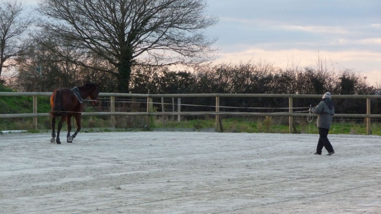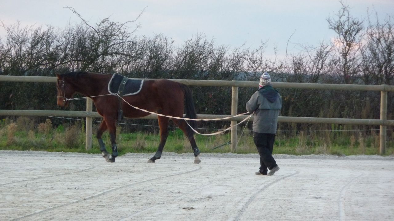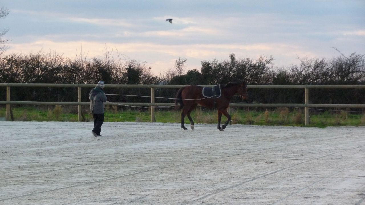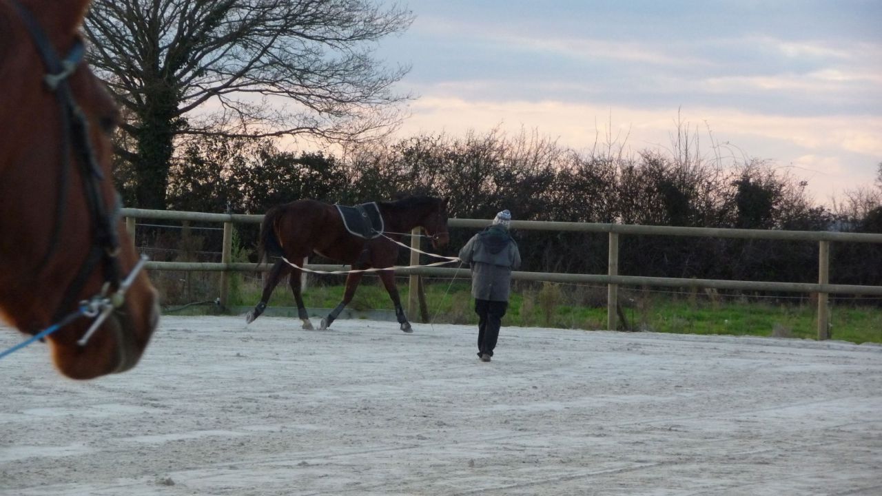 | Dire merci | Vendredi, pas de Lasco. Trop fatiguée, j'avais besoin de rester chez moi... Donc dimanche, après la pluie du matin, direction le club. Le temps est couvert, mais ça à l'air de tenir. Je prépare Lasco et direction la carrière. Une copine est là, elle va me donner un coup de main. Détente cool, rênes semi longue pour aller chercher l'extention. Ca fesait longtemps que je ne l'avais pas fait dès la détente. ![]() ![]() ![]() ![]() Déconcentration ![]() ![]() ![]() Franchement bien. Mais je suis vite limitée avec mes rênes trop courte. Lasco n'est pas loin d'aller chercher le sol, mais j'ai pas assez de rênes. ![]() ![]() ![]() ![]() ![]() |