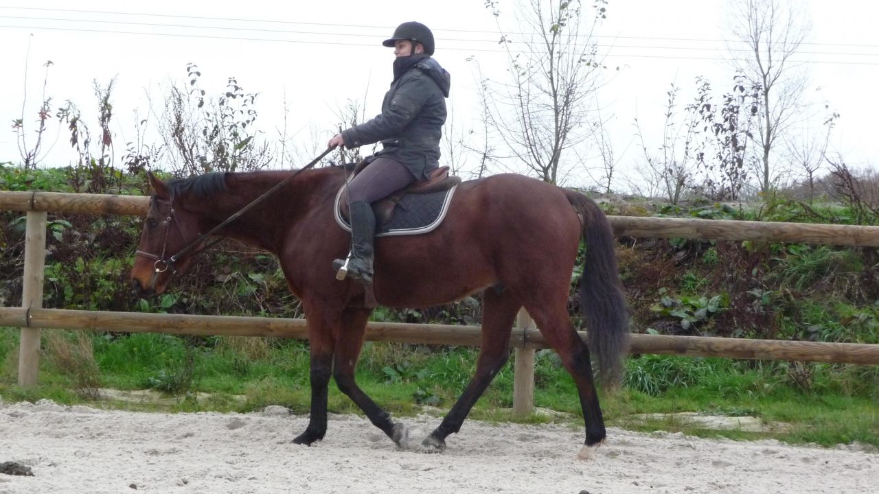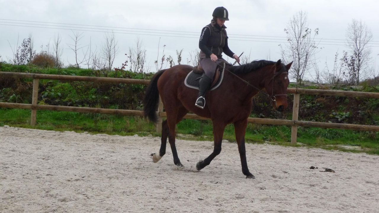 | Dire merci | Ensuite, la copine me fait bosser avec ma rênes externe et mes jambes. Tourner sans la rêne interne (Lasco est trop dépendant de cette rêne pour tourner). J'ai pas mal galéré au début puis en faite, Lasco a compris très vite. Au trot, encore mieux. Il vient tendre son dos et se poser sur le mors, il est trop agréable.![]() ![]() ![]() ![]() Impossible de charger sur youtube ce matin, j'ai tenté sur 1cheval, mais je comprends pas comment ça marche donc voilà le lien: [url] http://videos.1cheval.com/view/2495/212-1/[/url] Donc exo assez difficile pour tous les 2. J'ai décidé de terminé en virant mes étriers. Galop à droite, pas facile, c'est pas de ce côté qu'on est le plus à l'aise. Lien: Lien Mais à gauche, extra! Je me suis même tentée de petites accélération et reprendre avant la courbe, nikel. Retour au trot, je garde mes jambes pour garder un bon trot et là... pffiou, je me suis fait déculassé de ma selle. Un trot de malade, super dur à suivre, mais actif, cadensé, ça pousse fort, trop bonnes sensations. Grosses caresses, il a pas mal transpiré, on marche beaucoup et c'est tout pour aujourd'hui! Message édité le 03/12/12 à 09:23 |