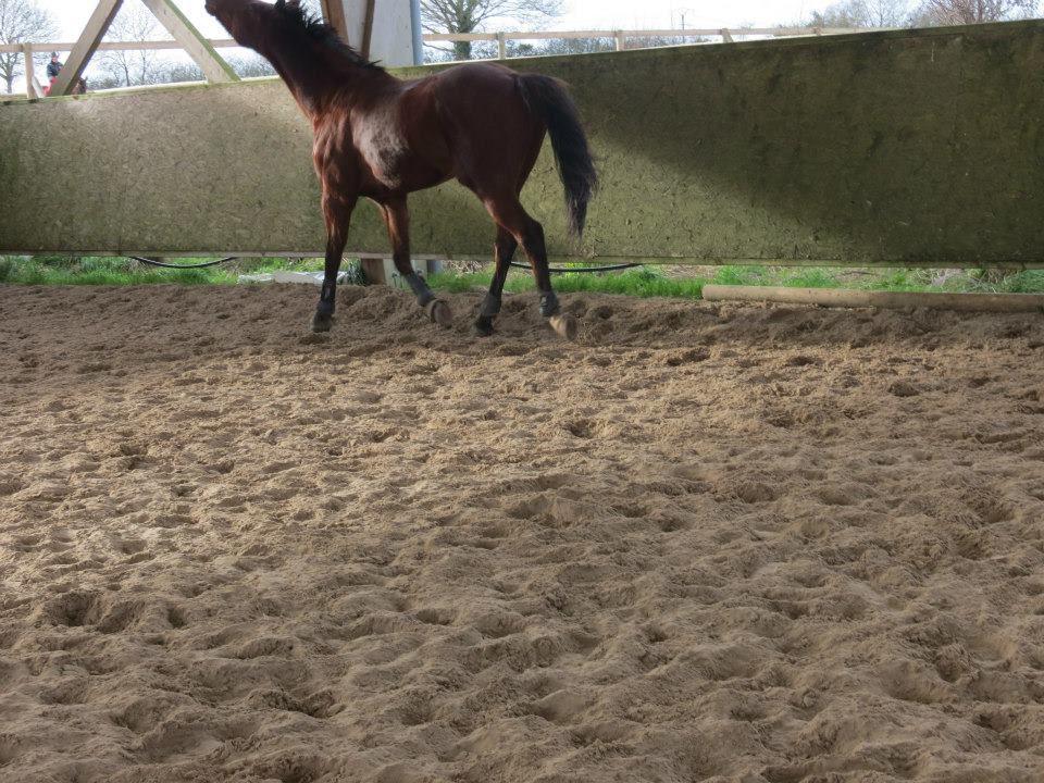 | Dire merci | C'est Lucie qui a été s'occuper de Lasco. En faite, mon chéri a (encore) gardé mes clées de voiture avec lui, donc j'étais coincée. Mais bon. Lasco avait encore une pêche d'enfer. Lucie voulait le bosser en longues rênes. Mais dès la détente, parait qu'il était tout foufou. Ca aurait été limite dangereux d'insister avec le flot de rênes qui passents partout, elle a préféré tout enlever et le mettre en liberté. Au moins, il s'est défoulé! ![]() |