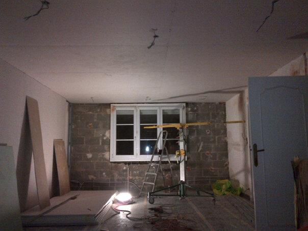 | Dire merci | marsu, oui, je mettrais des photos de l'avancement. Hier, placo quasi terminé et bandes et joint fait dans la future cuisine. Aujourd'hui, pose du carelage dans la cuisine et du parquet dans la salon. army, oui plutôt grande, enfin de mon point de vue. Elle fait 100m². |