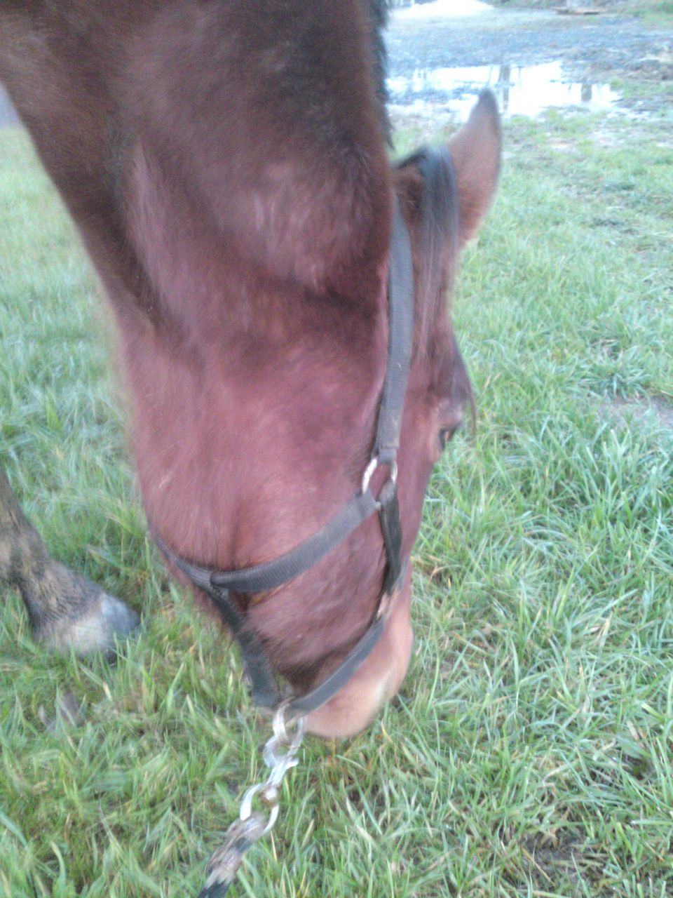 | Dire merci | Quand la boue est sèche, c'est facile à enlever! Ca laisse un cheval poussièreux, mais pas grâve, il est déjà plus présentable! Mais en ce moment, comme le pré est toujours trempé, pour nettoyer les membres... c'est foutu! |
