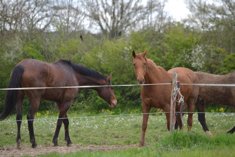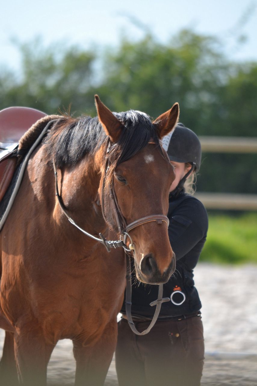 | Dire merci | Une soirée d'été hier! Encore 25°C quand je suis arrivée au club. Direction le nouveau pré. Il était dans la partie jamais paturé. J'appelle, et pour la 1ère fois, j'entends un hennissement au loin puis des bruits de galop. Et voilà les 3 chevaux qui arrivent aux petits galop. C'était pas Lasco qui a hennit, mais la jument qui est pas mal en chaleur avec l'arrivée d'un nouveau hongre dans le groupe. Côté, boulot avec Lasco, une bonne détente. Vraiment pas mal. J'ai essayé de remettre tant bien que mal ce qu'on m'a dit ce week end. C'est pas incroyable, mais bon, ça ressemble à quelques choses je pense. Faut vraiment que je me filme prochainement. On passe à l'exo du jour, un couloir de barre au sol sur la piste et un dans le doublé dans la lougueur en X. La but, transition descendente dans le couloir, qu'il reste DROIT. Facile à dire comme ça! La transition trot-pas, galère, je me suis un peu attardé dessus. Une fois correct, je passe à galop-trot. Là par contre, extra. Je refais puis à l'autre main, toujours aussi extra. Donc je passe à galop-pas, en incluant 1-2 foulées de trot (je n'y arrive pas encore sans le trot) et pareil, vraiment bien. Je refais à l'autre main et j'arrête là. 35 minutes de séance, il était trempé. Vraiment trop chaud. Une douche des jambes, bon coup de brosse et retour au pré pour quelques photos! ![]() ![]() Les 2 gars qui se chamaillent gentiement la jument! ![]() ![]() Lasco s'éloigne, les 2 autres suivent! ![]() Des p'tits cul! ![]() Message édité le 25/04/13 à 09:28 |