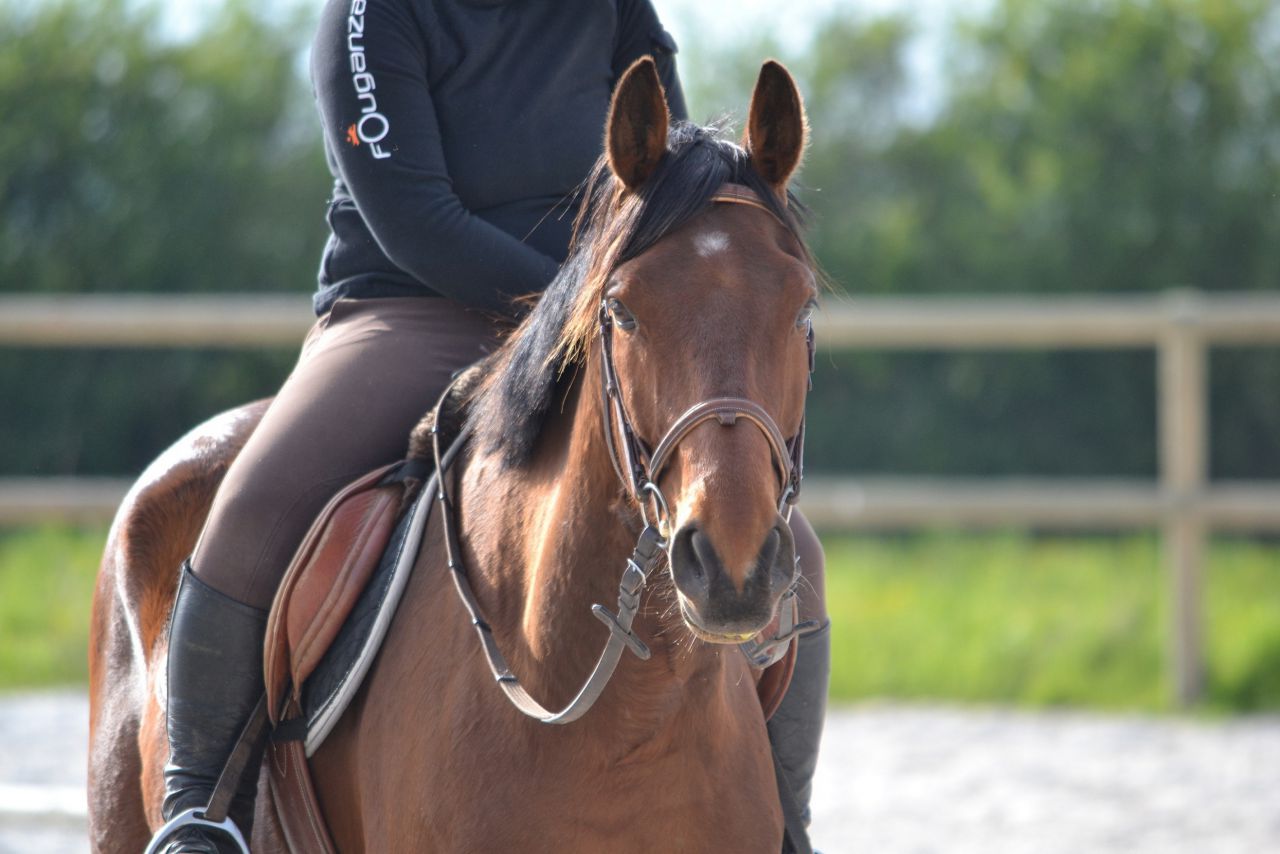 Lasco pas content, tête le plus haut possible (donc plus de controle) et au galop en fesant le dos rond. J'ai bien failli voler. On a remonter toute la carrière comme ça!
